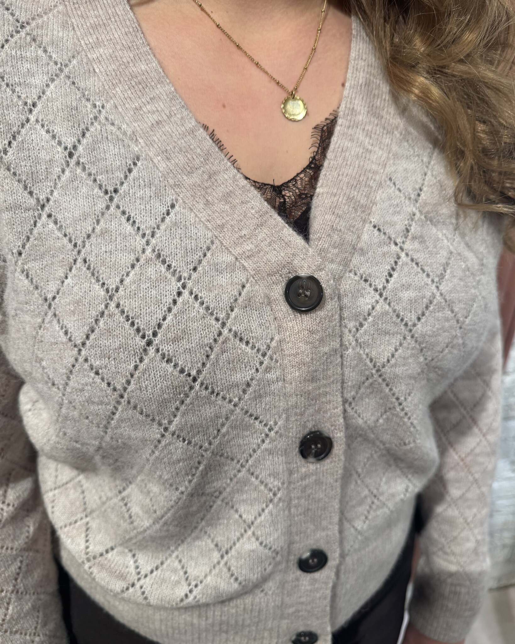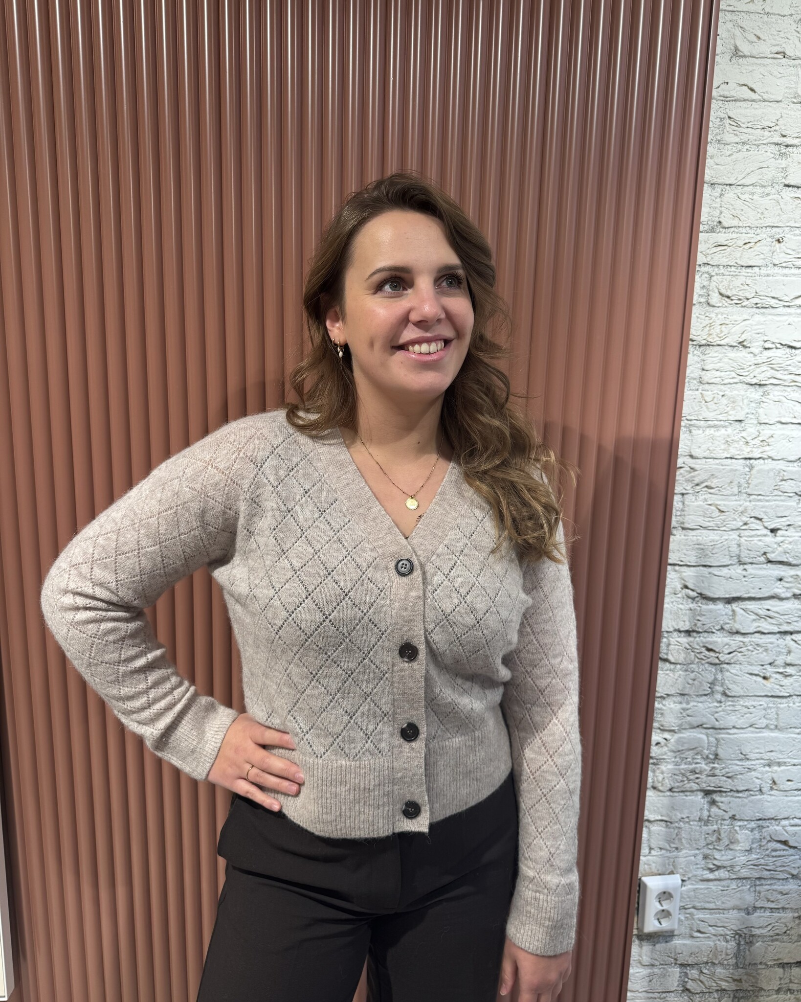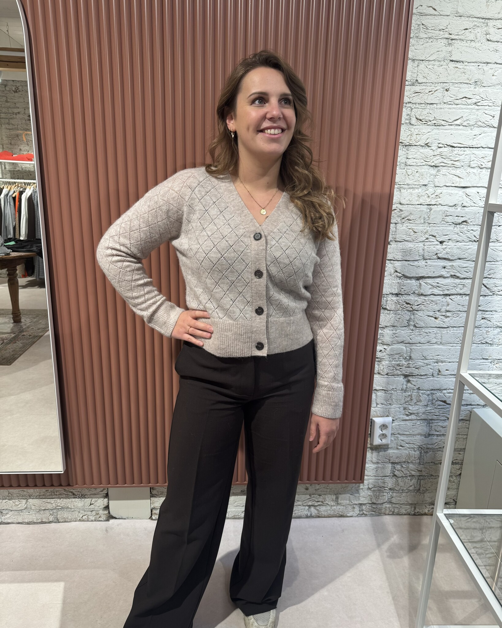 Deze cardigan is de perfecte balans tussen warmte en stijl, en is geschikt voor zowel dagelijks gebruik als meer formele gelegenheden. Combineer het met een jurk, jeans of pantalon voor een moeiteloze en elegante look.