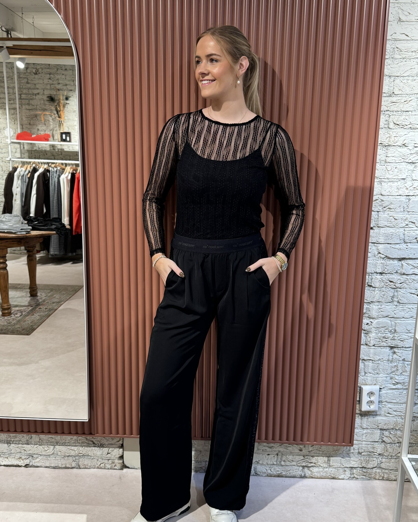 De Barb O‑Neck Blouse in Black van Co’Couture is een elegante zwarte top met ronde halslijn en lange mouwen, gemaakt van een hoogwaardige combinatie van 90% polyamide en 10% elastaan, wat zorgt voor een comfortabele stretch en een verfijnde pasvorm. Deze top valt nauwsluitend en heeft een subtiele textuur dankzij het fijne mesh‑materiaal.