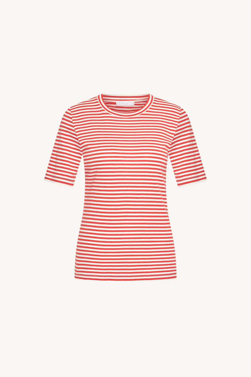 De Basic ss stripe shirt van By-Bar in de kleur Lollipop stripe is een stijlvol shirt met een casual fit en een comfortabele normale pasvorm. Dit t-shirt heeft een ronde halslijn en korte mouwen, ideaal voor een ontspannen en modieuze look. Met zijn tijdloze rood-witte streepjespatroon is dit shirt perfect voor elke casual chic outfit.