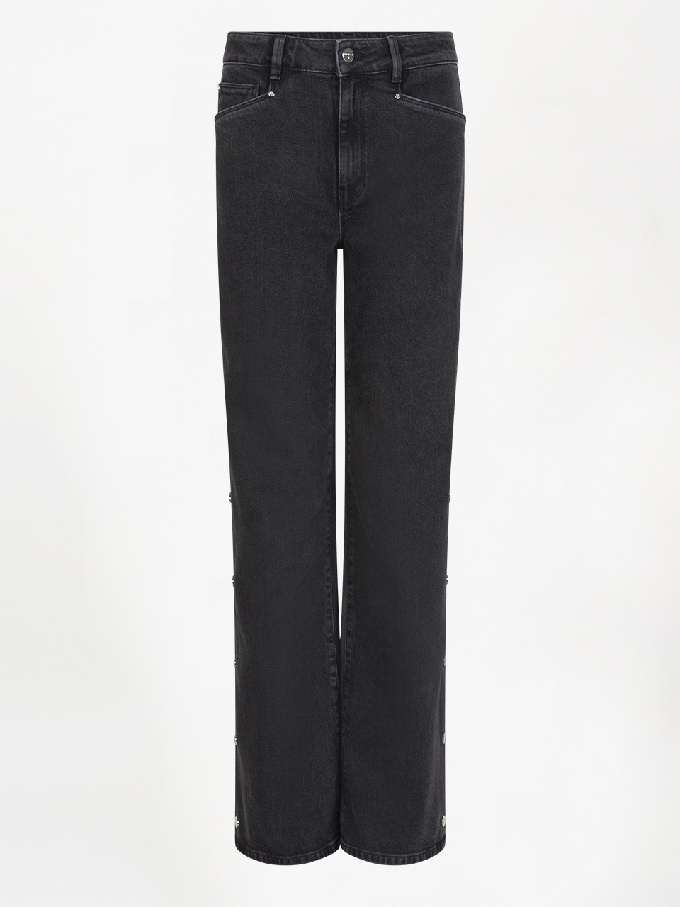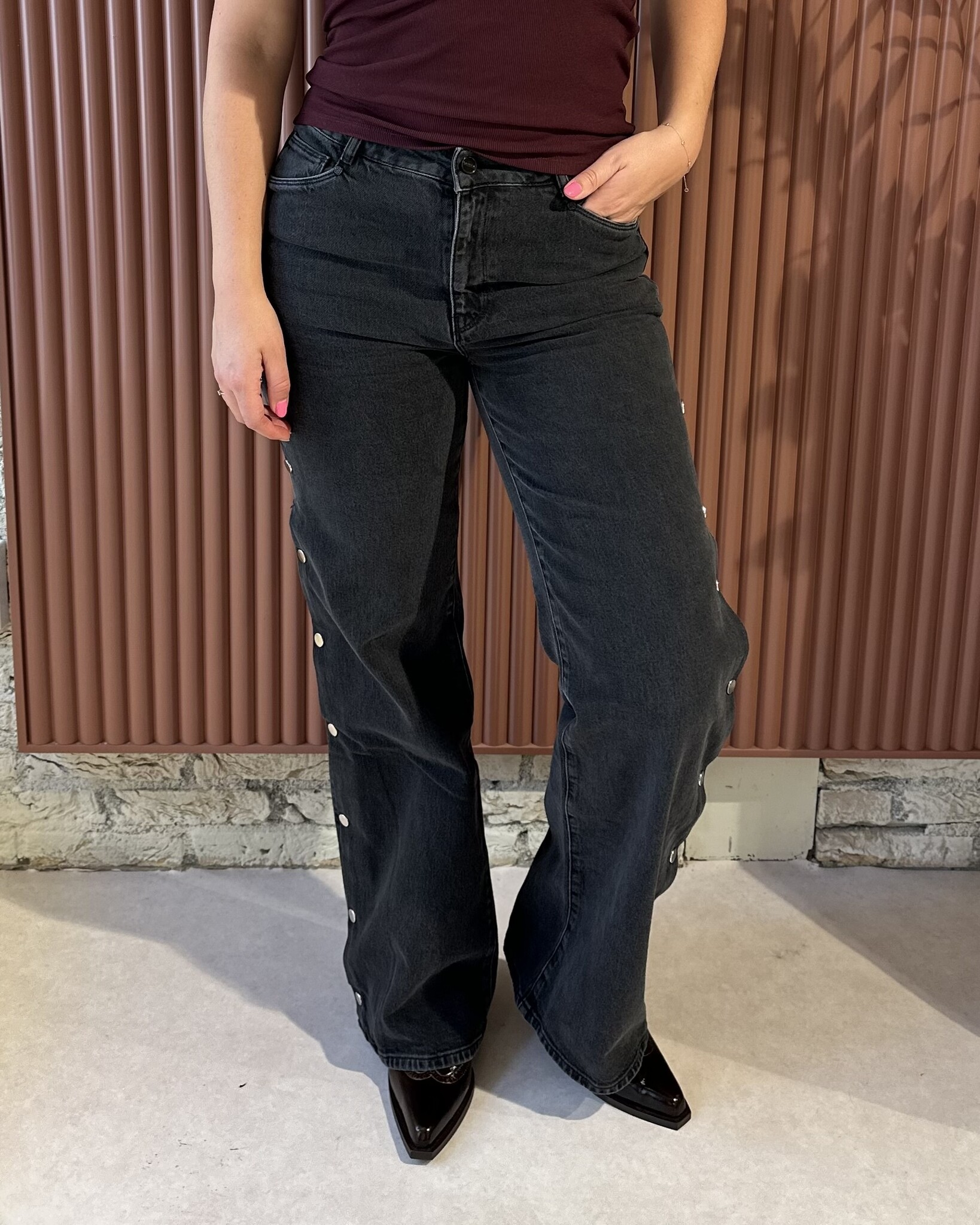 Belvina Button Up Wide Leg Jeans | Washed Black
