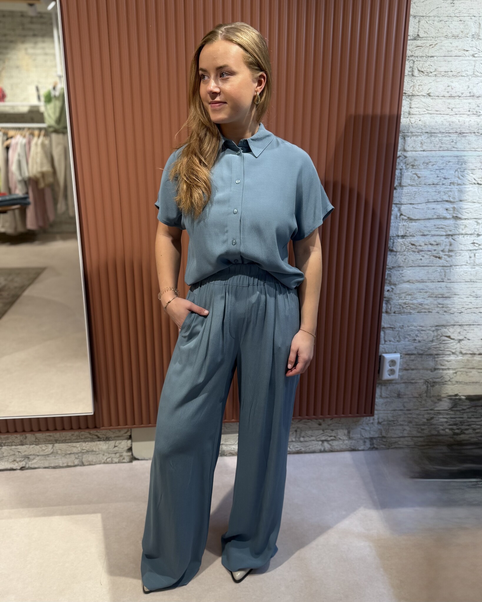 De Benji viscose pants van By-Bar in de kleur Blue Stone is jouw nieuwe favoriete casual chic broek. Gemaakt van Lenzing Ecovero viscose, biedt deze broek comfort en een verantwoorde keuze. De losse pasvorm en hoge taille creëren een elegante look, terwijl de zijzakken handig zijn voor kleine essentials. De broek is draagbaar als set met een bijpassende top voor een complete, stijlvolle outfit. Combineer met de Barley viscose blouse | Blue Stone een complete look!