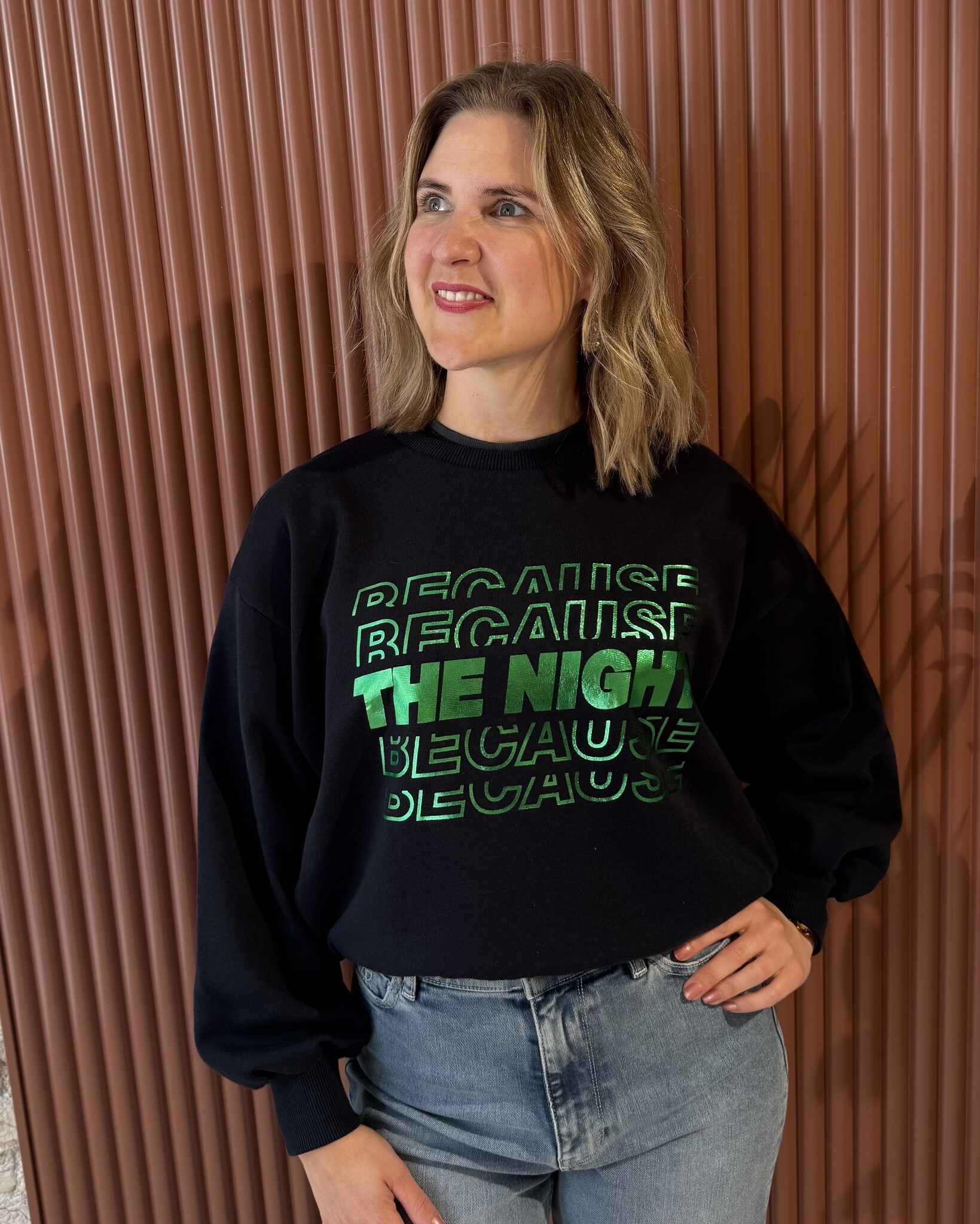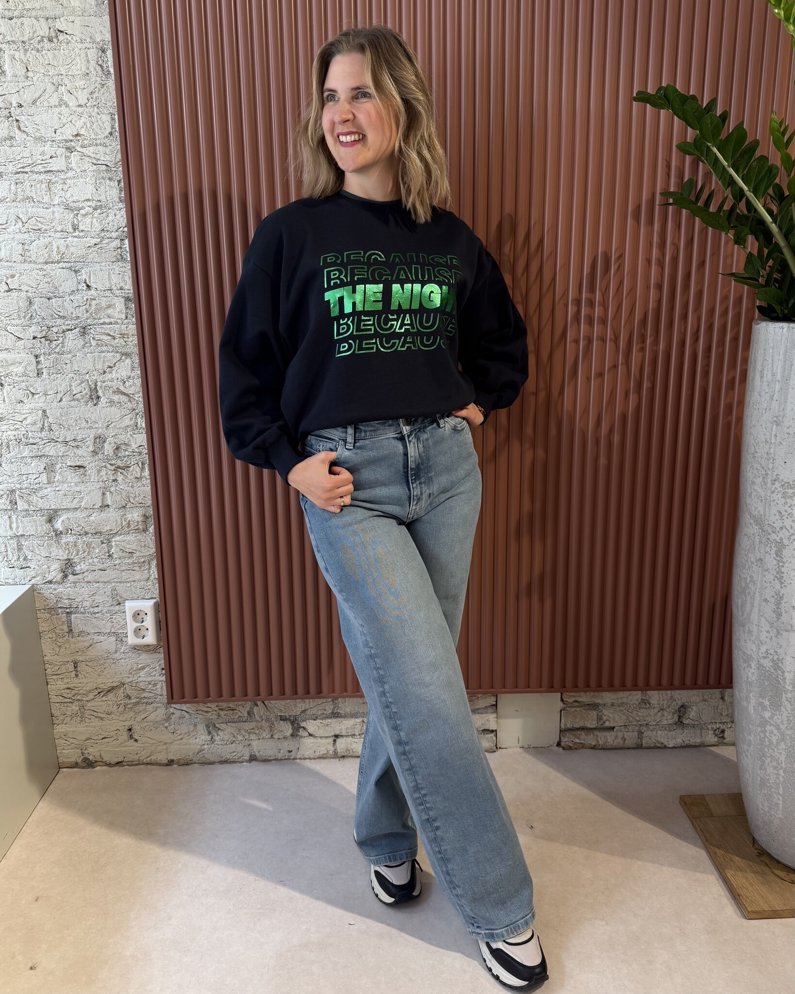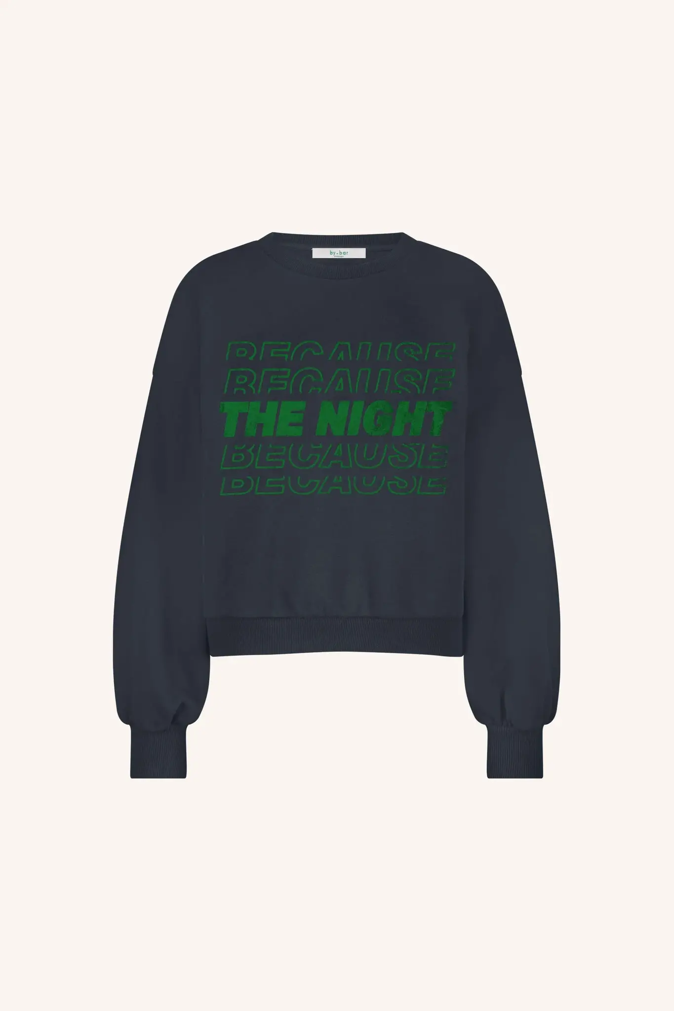 Ontdek de Bibi nights sweater van By-Bar, een bewuste must-have. Deze oversized sweater in de kleur Midnight met een comfortabele ronde halslijn en lange mouwen is gemaakt van een mooie katoenkwaliteit. De verlaagde schoudernaden en opvallende statement print geven je look een unieke twist. Perfect voor ontspannen dagen vol stijl en comfort.