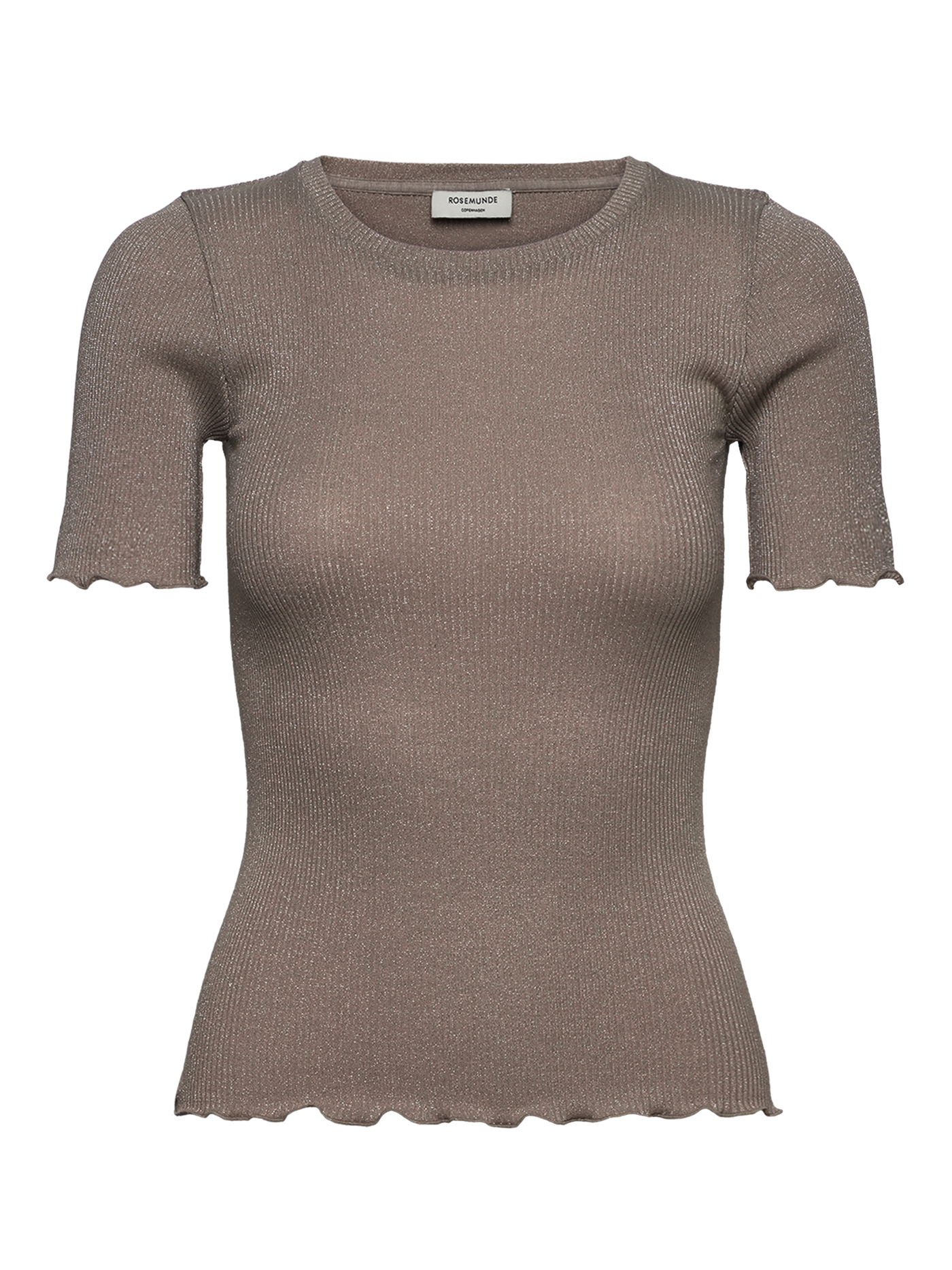 Het Boston Lurex T-shirt in Falcon van Rosemunde combineert comfort met een vleugje luxe. Het T-shirt is vervaardigd uit een unieke mix van 39% katoen, 35% metallised fibres en 26% viscose, wat zorgt voor een zachte feel en een subtiele glans. De metallische vezels geven dit T-shirt een verfijnde uitstraling, perfect voor zowel casual als chique gelegenheden.