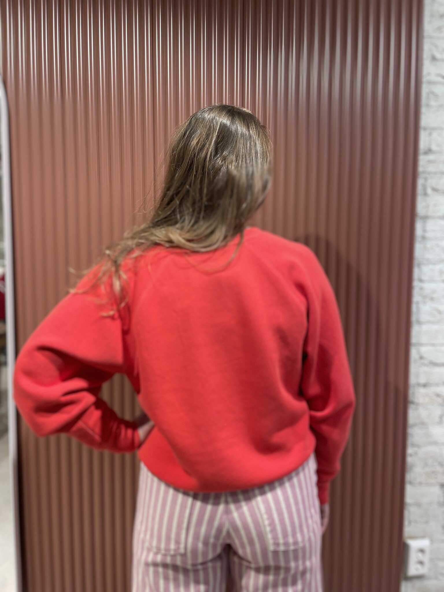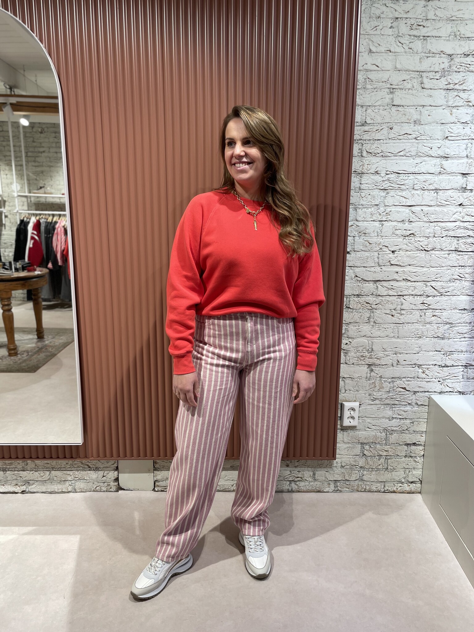 De Carrie Sweater van By-Bar in de kleur Poppy Red heeft een comfortabele oversized pasvorm met verlaagde schoudernaden en een zachte, ronde halslijn. Deze duurzame sweater uit de casual chic-collectie is perfect voor een relaxte, maar stijlvolle look en laat zich moeiteloos combineren met al je favoriete outfits. Een tijdloze must-have voor elke garderobe.