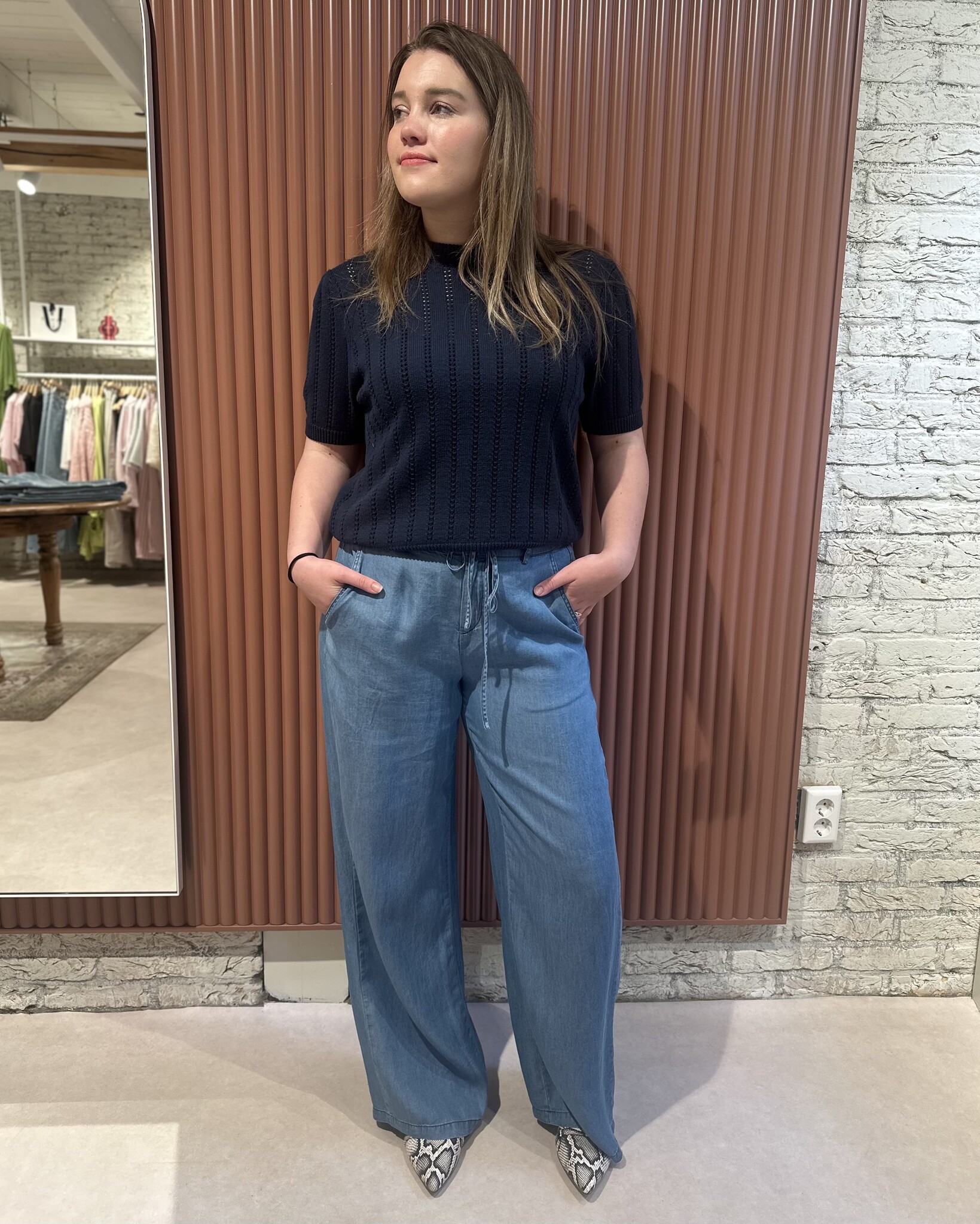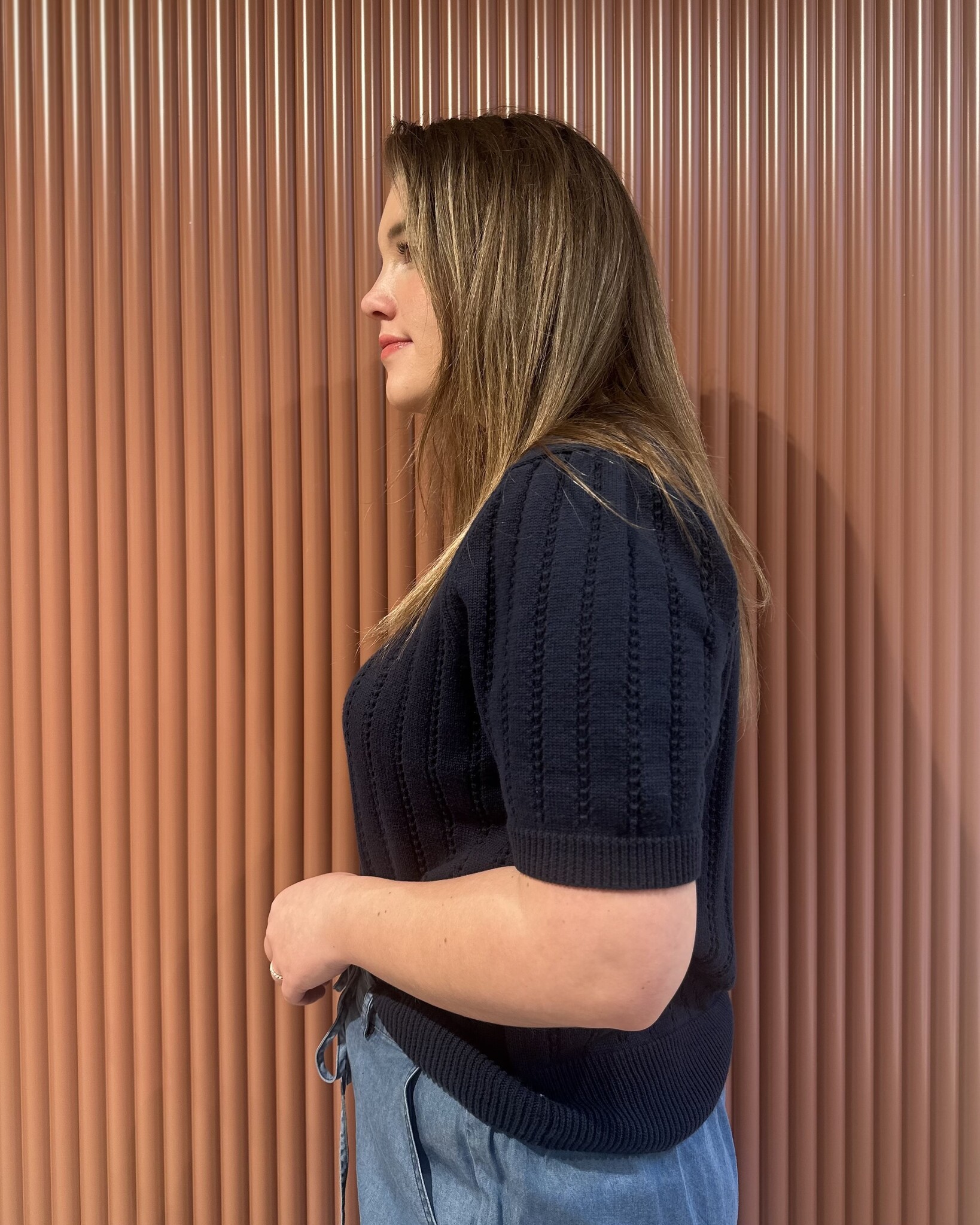 De Emilie SS O-Neck Pullover van Rosemunde in Navy is een vrouwelijke, lichtgewicht trui van 100% katoen met pointelle structuur en ronde hals. Het zachte fit en tijdloze ontwerp maken deze pullover ideaal voor stijlvolle voorjaars- en zomerlooks.