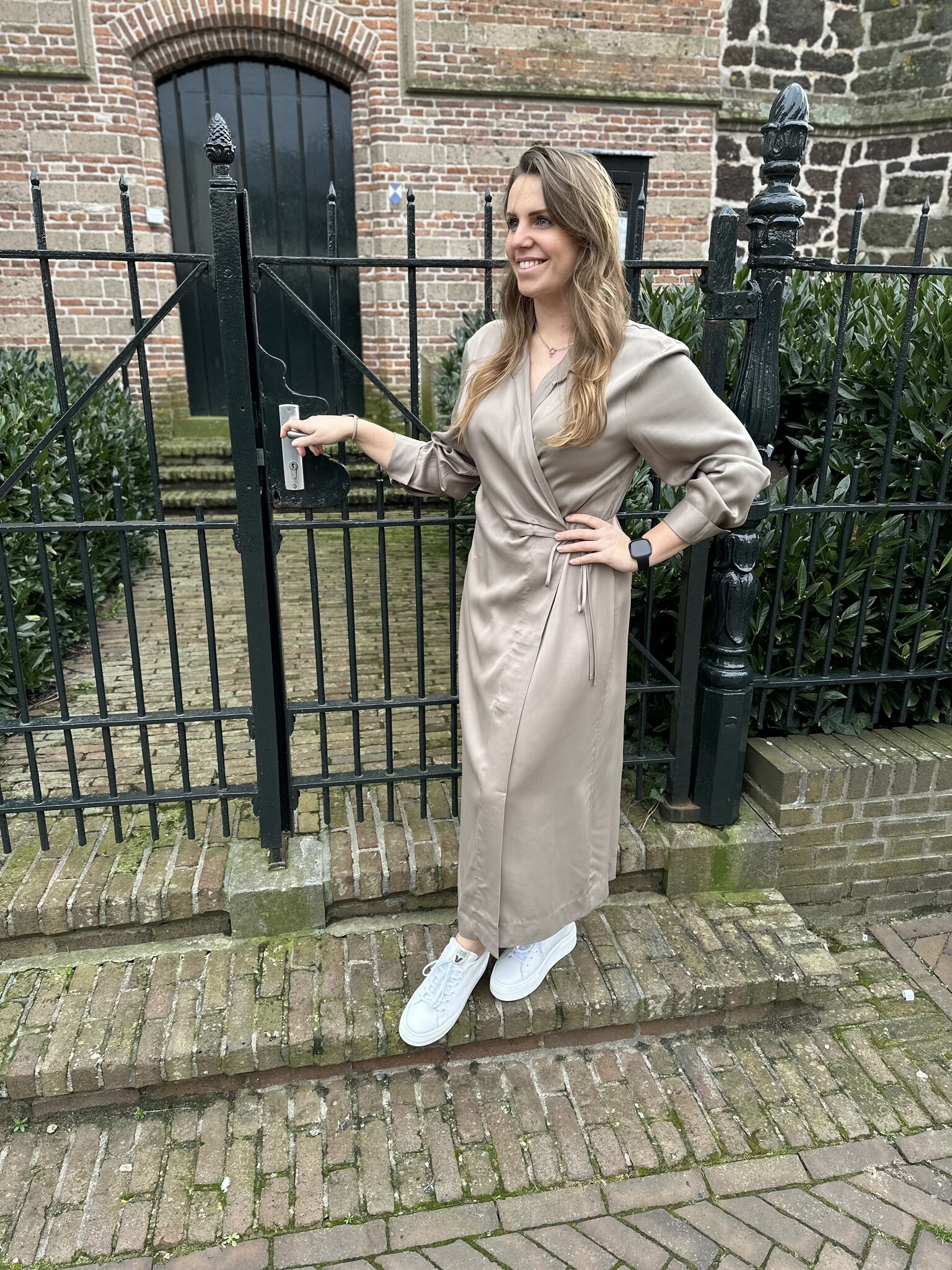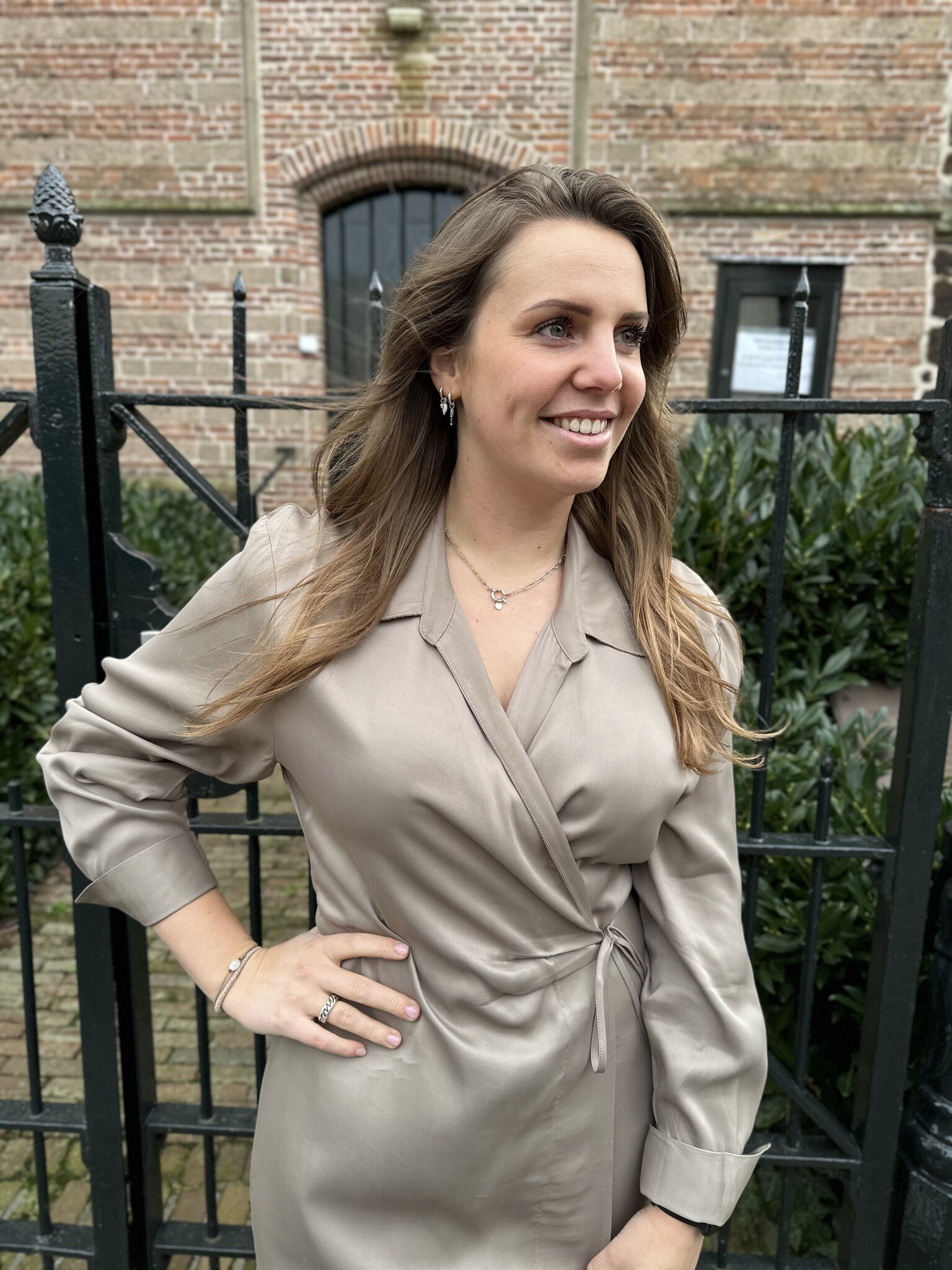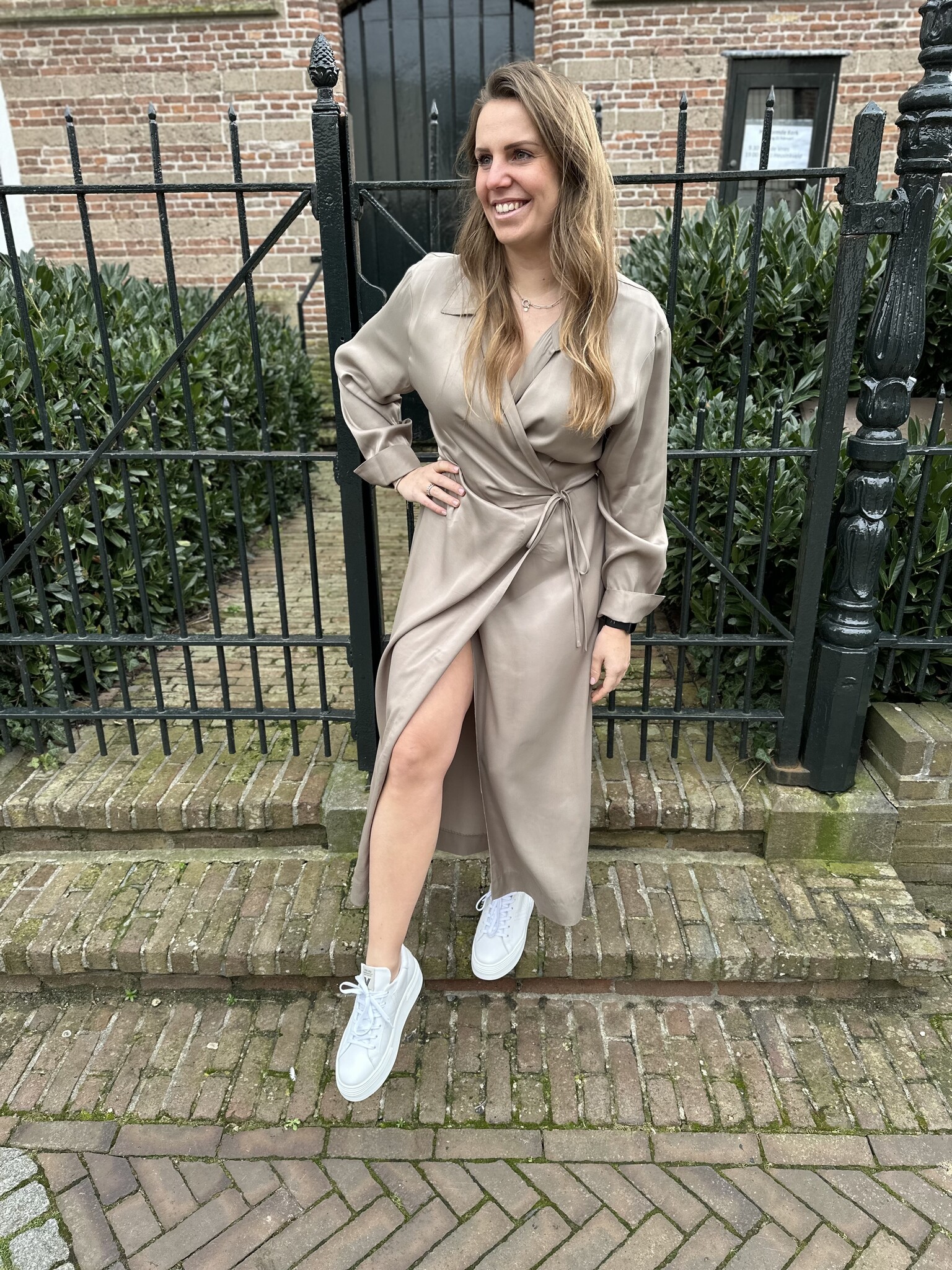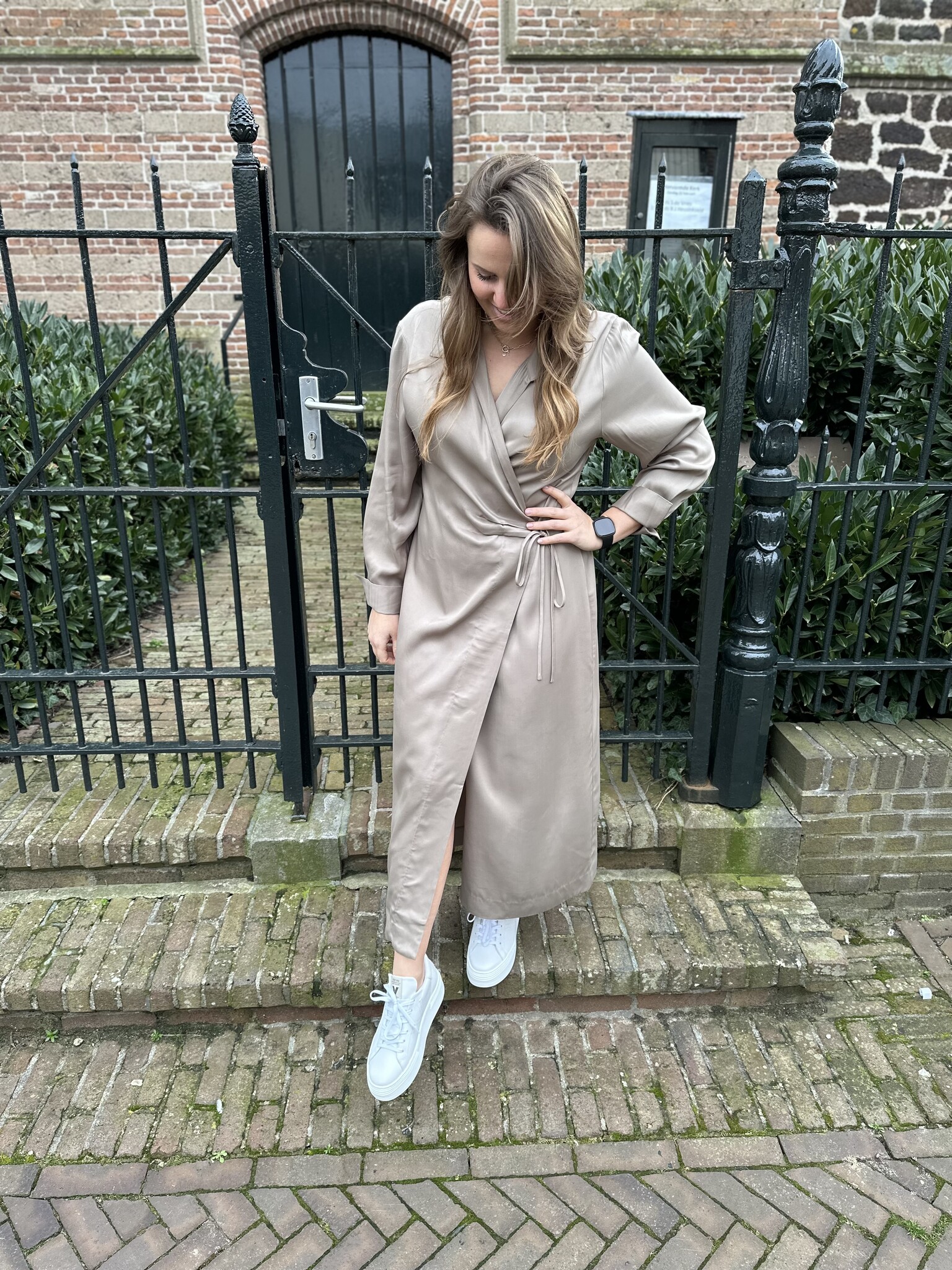Erina dress van Second Female is een prachtige overslag jurk. De lange jurk heeft een kraag en een open halslijn met gekruiste voorkant. Met een stoffen strikband die om de taille gewikkeld is en aan één kant kan worden vastgemaakt. Lange mouwen met manchetten met knopen en een enkele borstzak. De Erina Dress is volledig gevoerd.