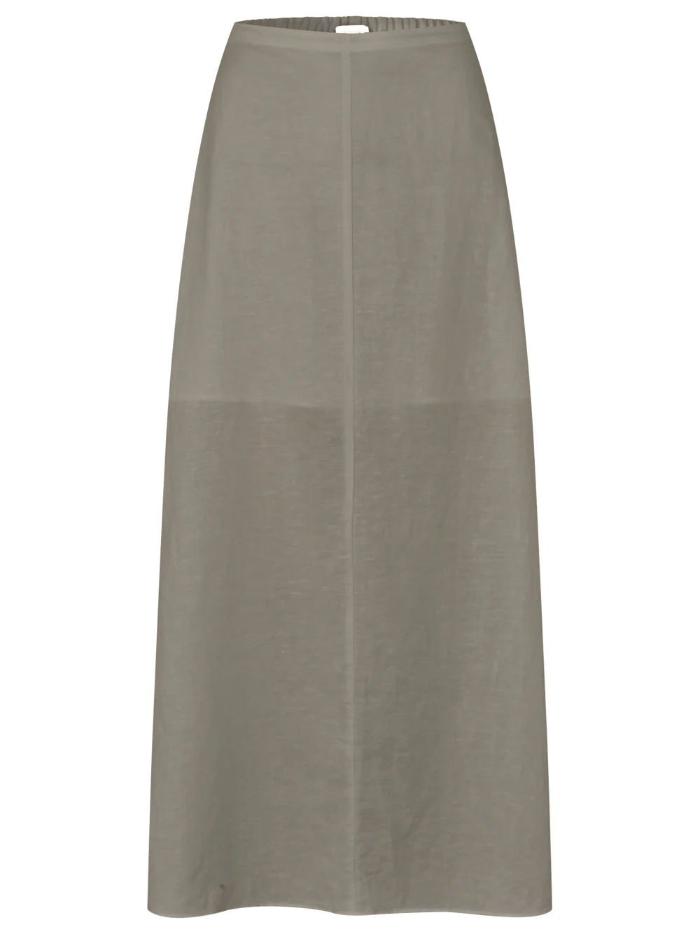 De Esther Linen Long Skirt van Rosemunde in de kleur Dried Sage is een elegante en luchtige lange rok die perfect combineert tussen comfort en stijl. De rok is gemaakt van een hoogwaardige blend van 60% linnen en 40% katoen, wat zorgt voor een lichtgewicht, ademend en soepel vallend materiaal.
