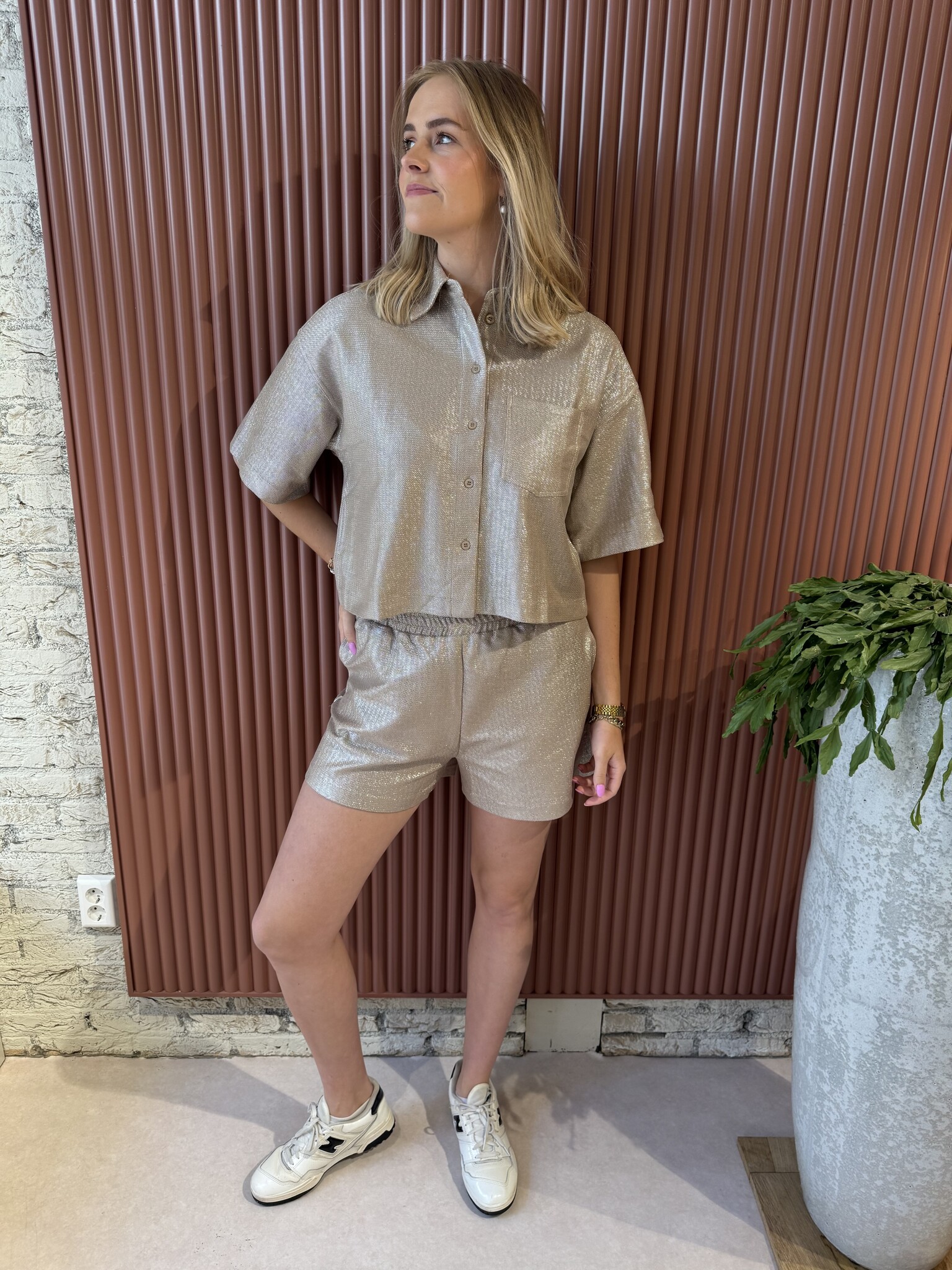 De Alix the Label Foil Cropped Blouse in Silver combineert comfort met een modieuze metallic uitstraling. Gemaakt van 100% katoen voelt de blouse zacht en ademend aan. De licht cropped pasvorm geeft een moderne en speelse touch, ideaal voor casual en feestelijke outfits. De metallic zilveren finish maakt deze blouse een echte eyecatcher.