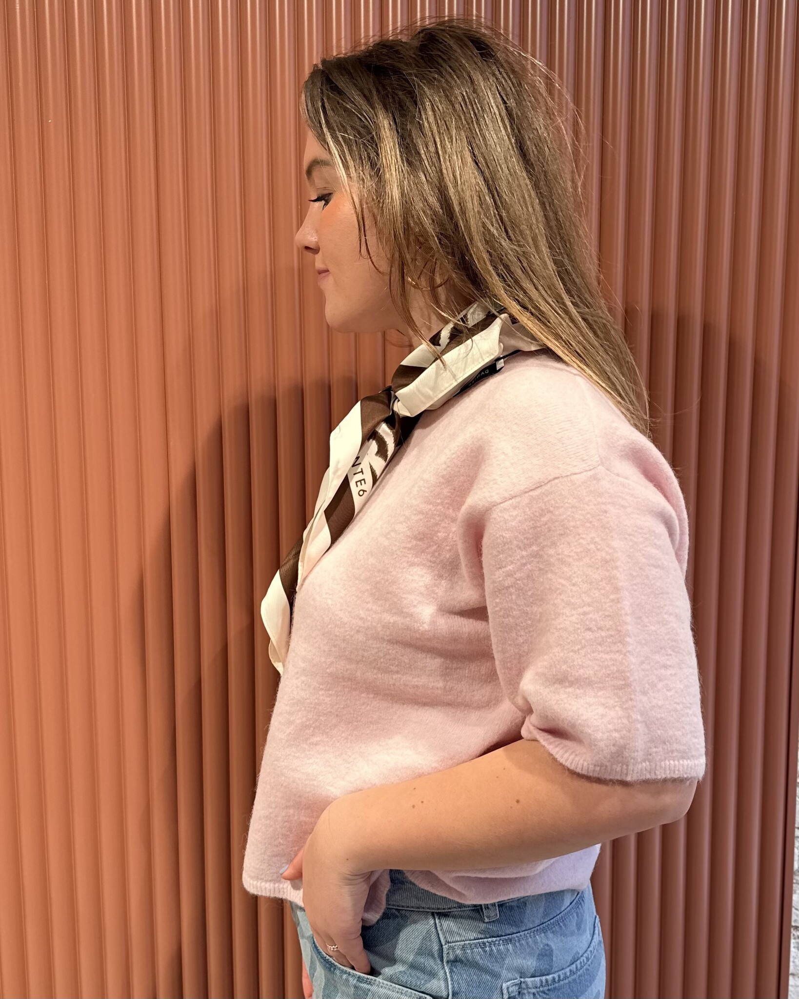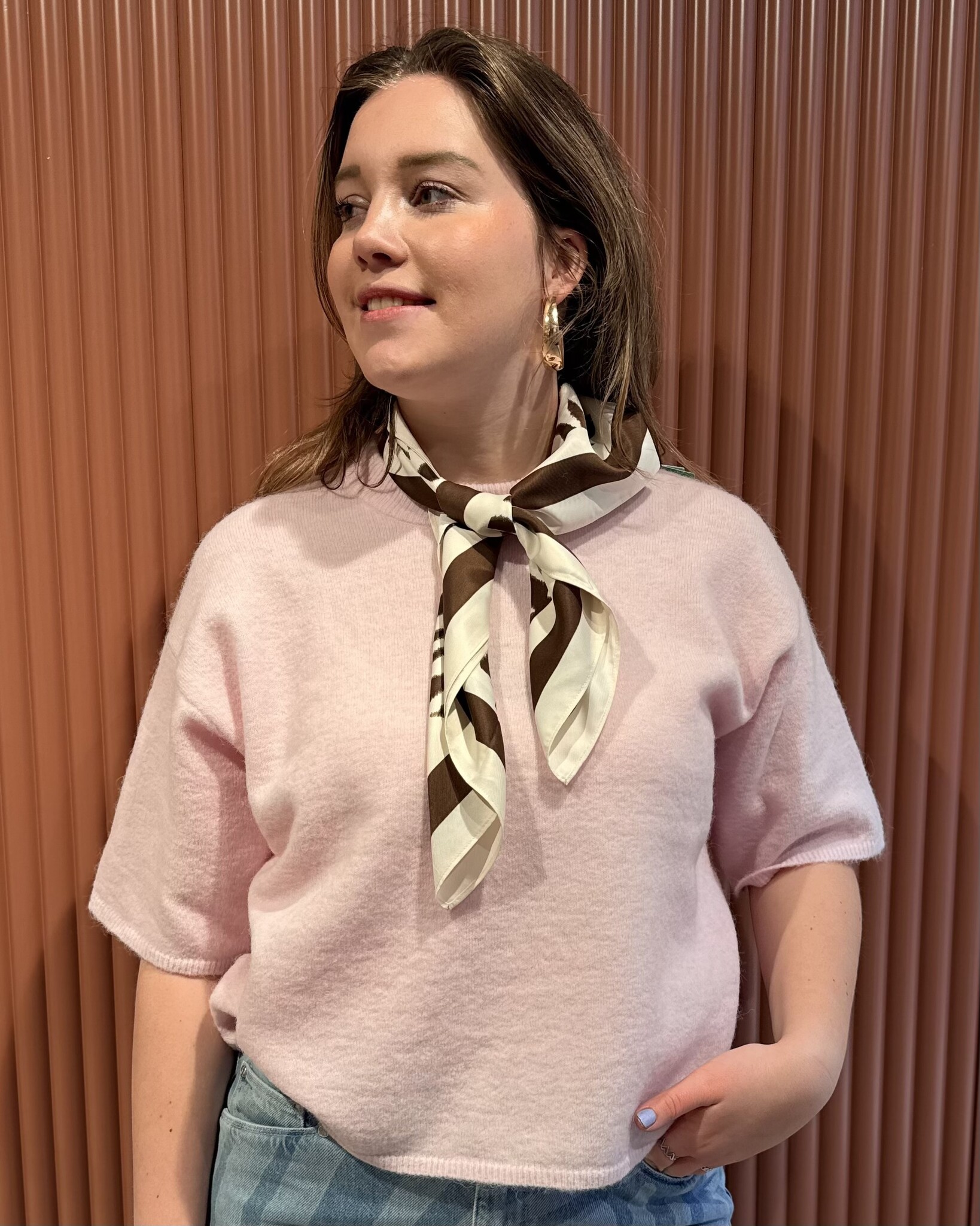 De Gabby Knit O-Neck van Second Female in Pale Lilac is een zachte pullover met korte mouwen, ronde hals en dropped shoulders. De rechte, brede pasvorm en de fluffy stofmix van alpaca, wol, polyamide en elasthaan maken deze trui comfortabel, stijlvol en perfect voor het voorjaar.
