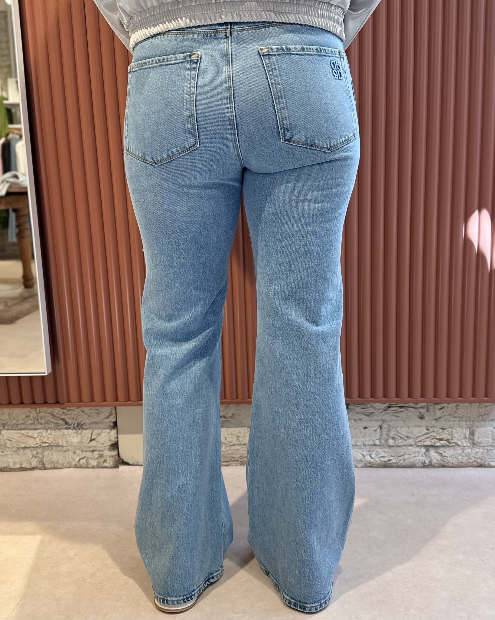 De Glam studded bootcut jeans van DANTE6 in de kleur Light Washed Blue is een opvallende en stijlvolle toevoeging aan je denimcollectie. Deze bootcut jeans combineert een klassieke pasvorm met een moderne, edgy touch door de studs langs de zijnaden.
