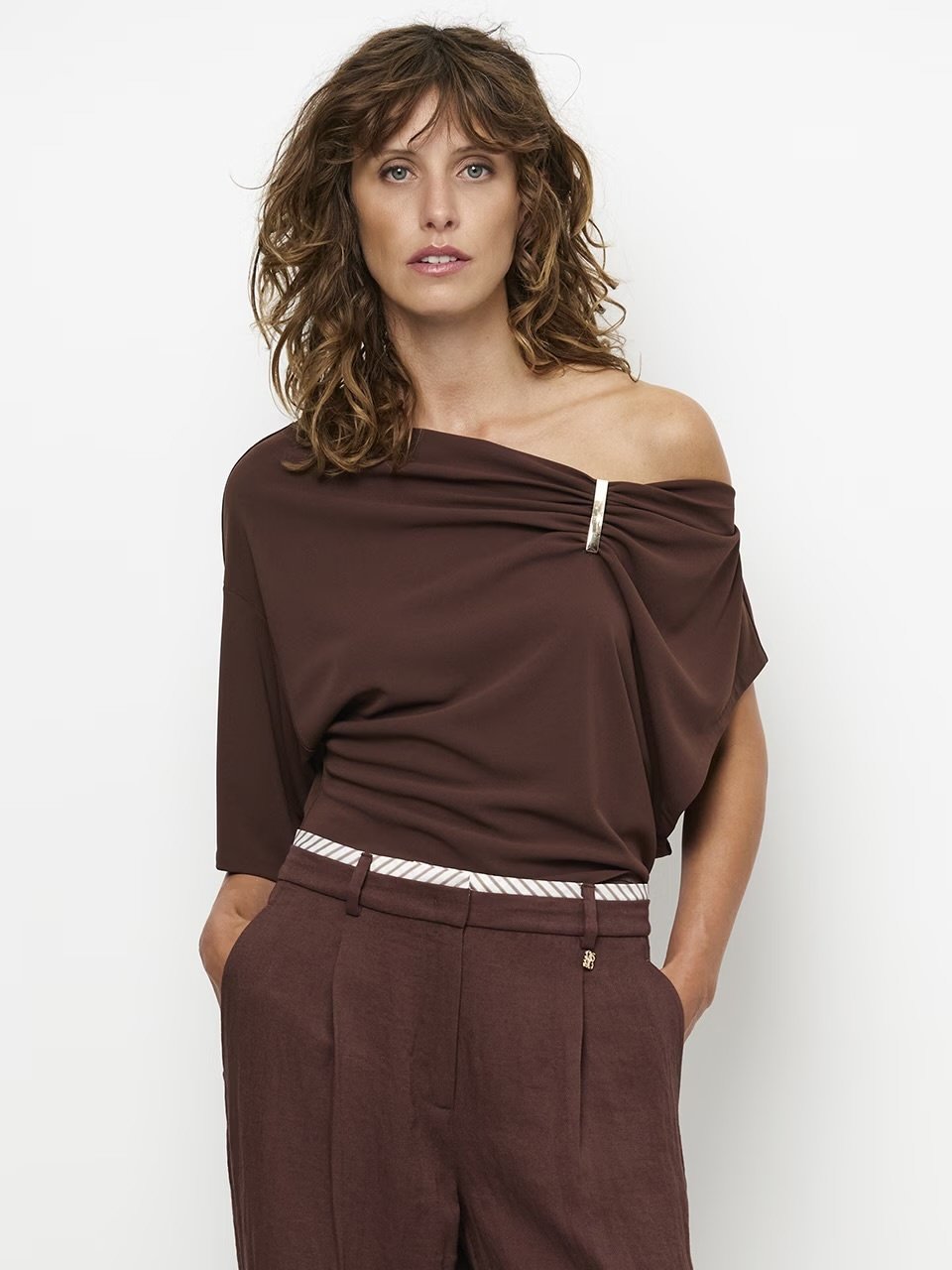 Dante6 Gou embellished drapey top | Chocolate Brown