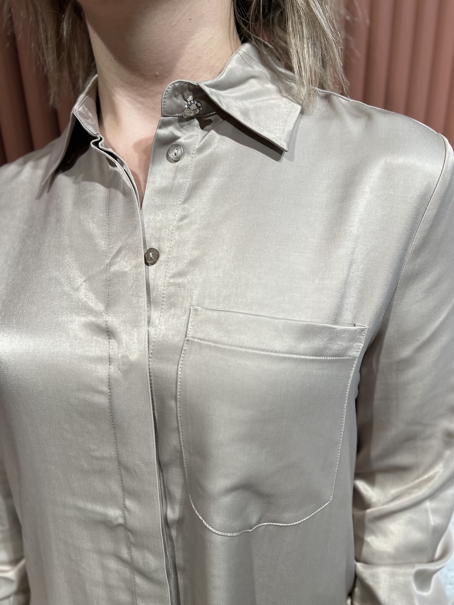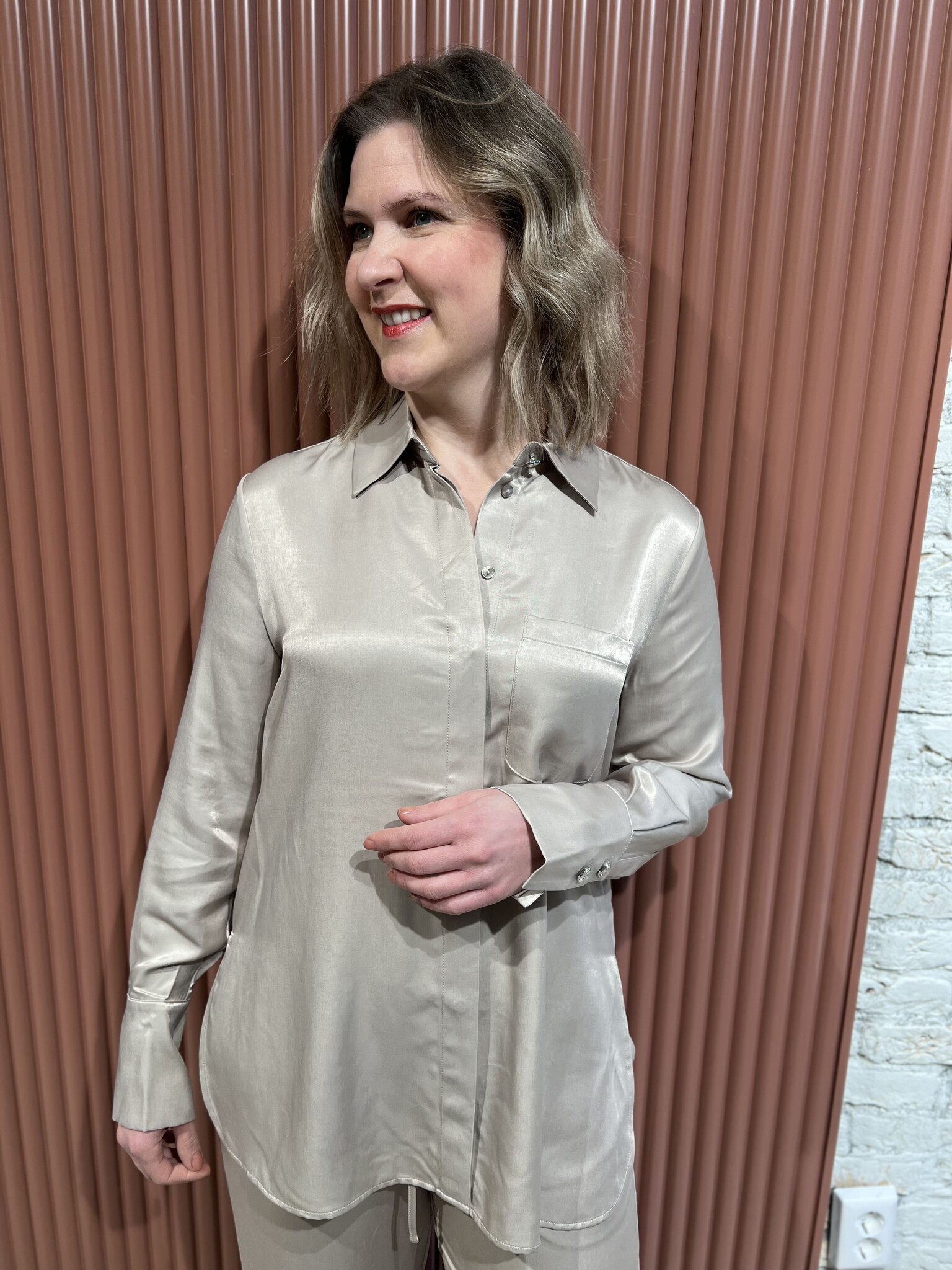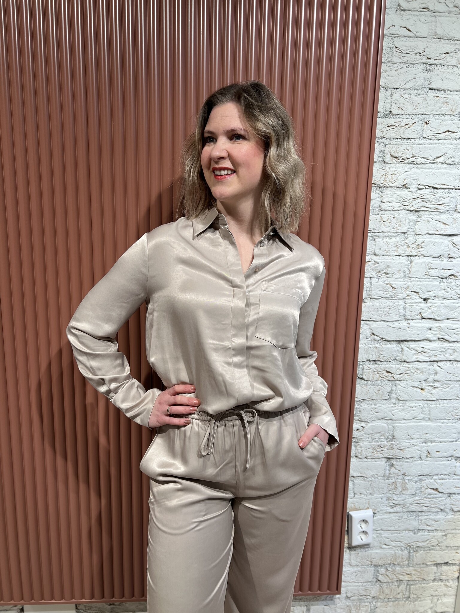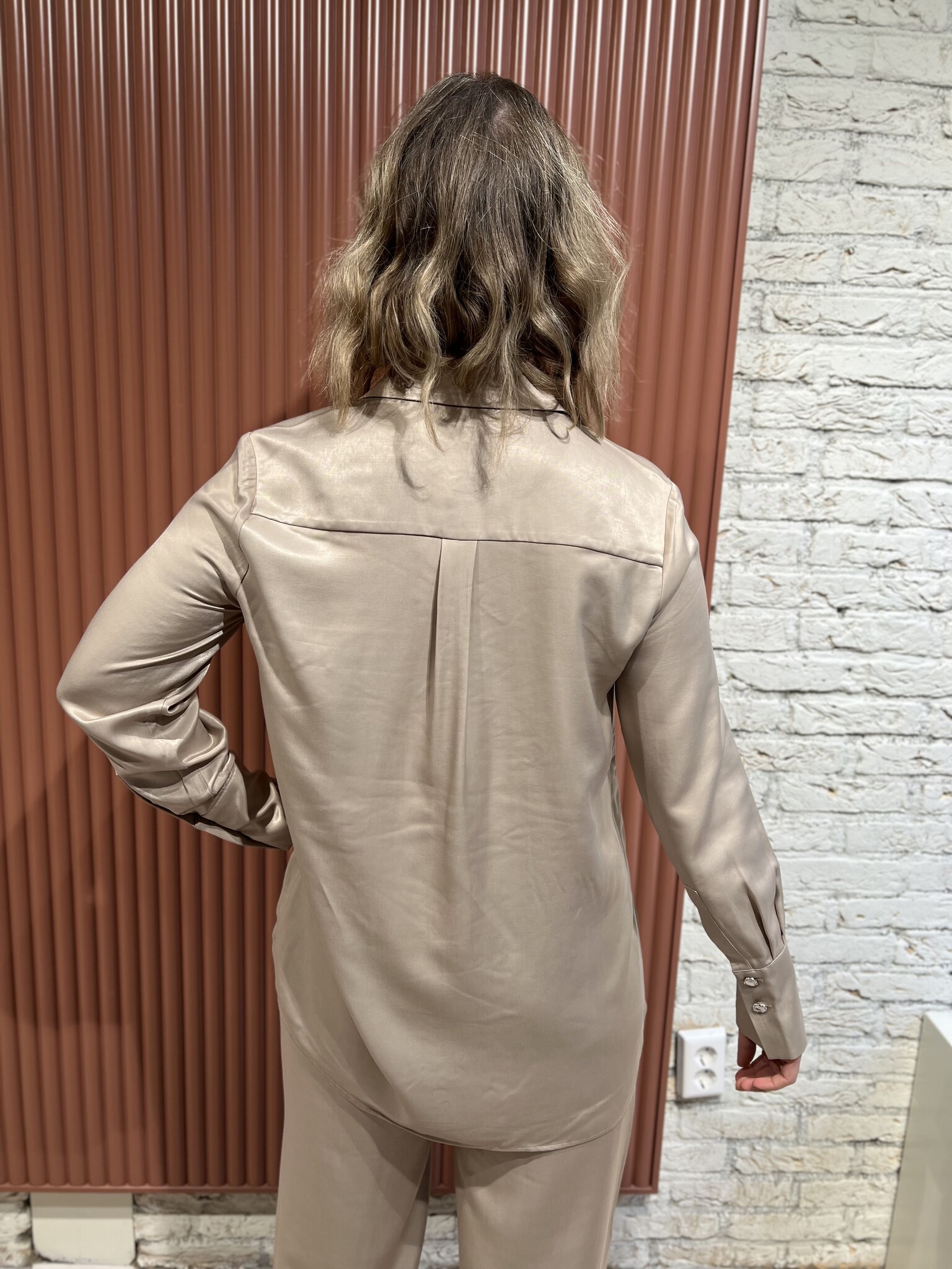 Voel je luxueus in deze Joni belted oversized shirt van Dante6 in de kleur Timeless Taupe. Het relaxte model heeft één borstzak. Het glanzende materiaal wordt geaccentueerd door het fraaie knoopdetail aan de manchetten en bij de kraag. Het overhemd wordt geleverd met een bijpassende luxe riem die je om je middel kunt strikken. Combineer dit shirt met de bijpassende broek Noldy voor een combi-set DANTE6-stijl.