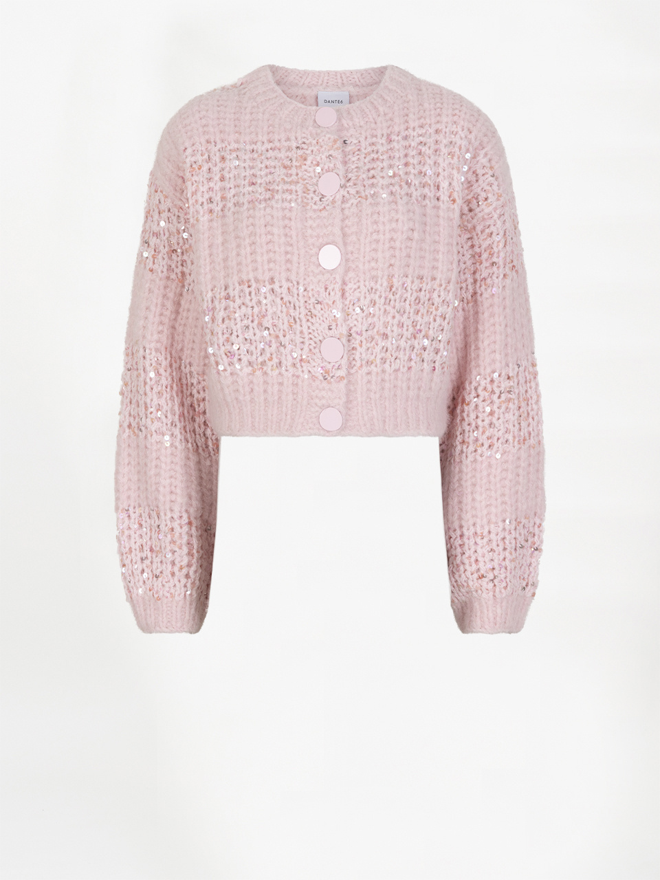 De Juna Stripe Cardigan van Dante6 in de kleur Rose Quartz is een roze chunky vest met brede strepen en subtiele pailletten. Het vest is gemaakt van een zachte alpacamix en heeft verschillende gebreide structuren voor een speels effect. De ronde halslijn met ribafwerking en de knoopsluiting aan de voorkant maken het een makkelijk te combineren item. De lange mouwen met ribmanchetten zorgen voor extra comfort en een mooie pasvorm.