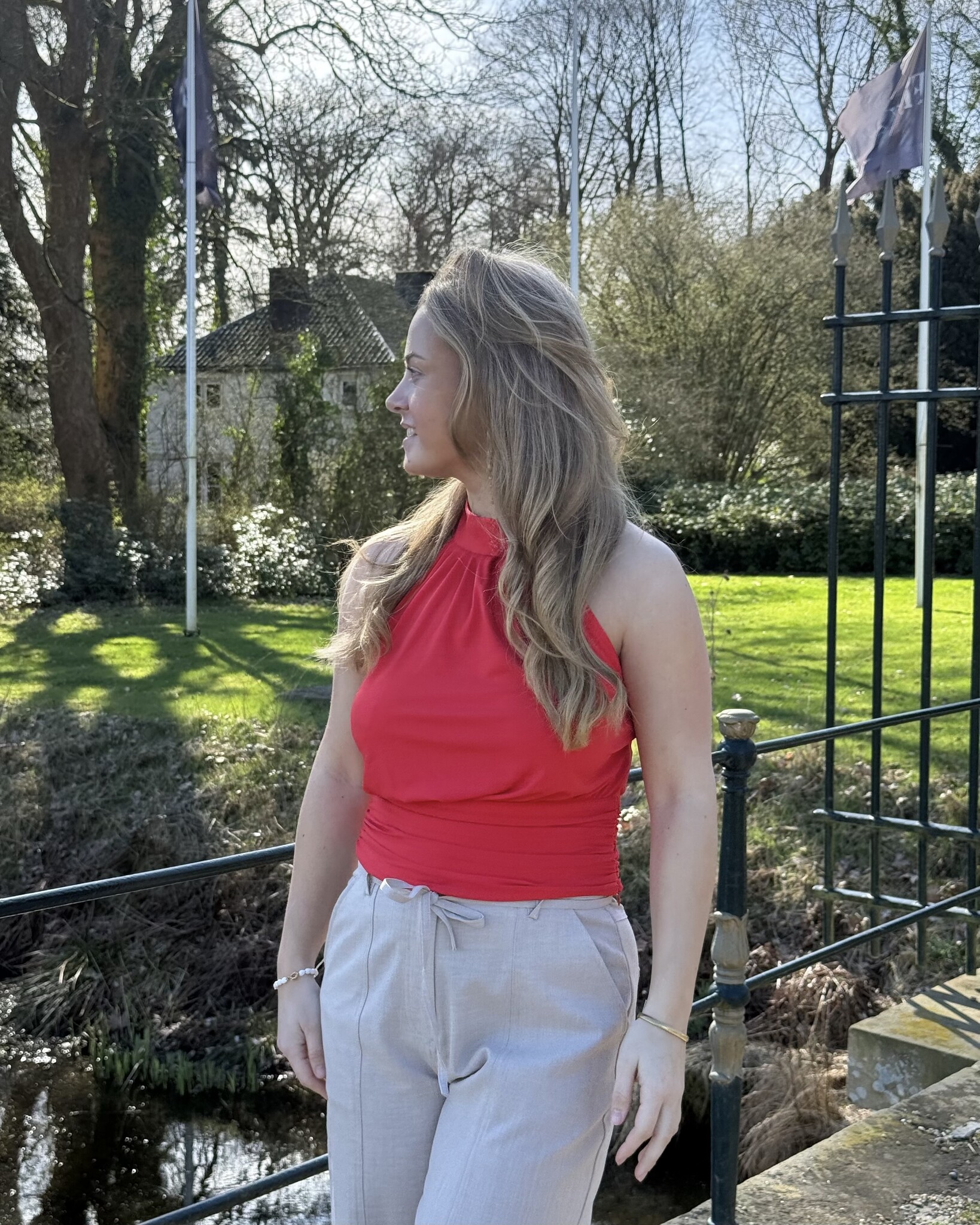 De Kadie top van Gestuz in de kleur Tomato is een moderne, mouwloze top met een korte lengte en een comfortabele pasvorm. De stretchy stof en het minimalistische design maken dit een veelzijdige basic voor het voorjaar.