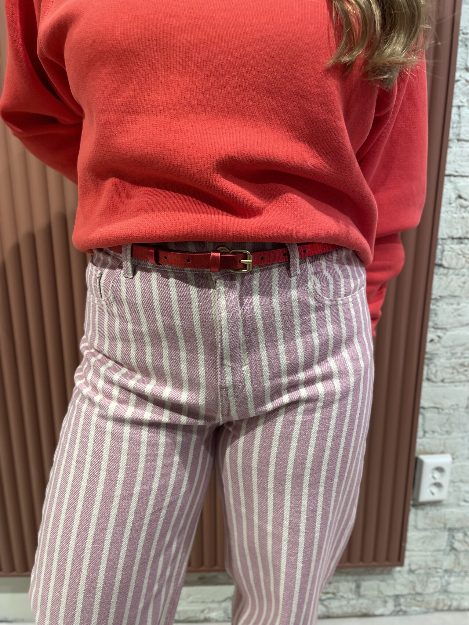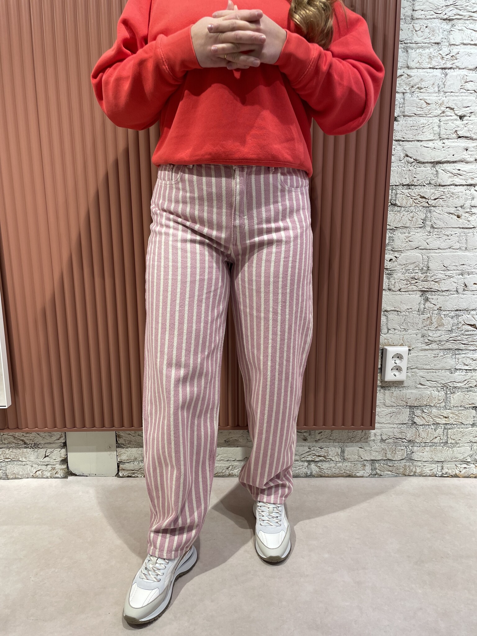 De Lew Pink Rocky Pants van By-Bar in de kleur Pink Stripe is een jeans van bewuste keuze met een casual uitstraling. Deze lange broek heeft een mid waist en is uitgevoerd als een 5-pocket jeans met een knoop- en ritssluiting. De subtiele plooidetails en het gestreepte dessin geven je dagelijkse outfit een speelse en eigentijdse twist. Perfect voor momenten waarop comfort en stijl moeiteloos samenkomen.