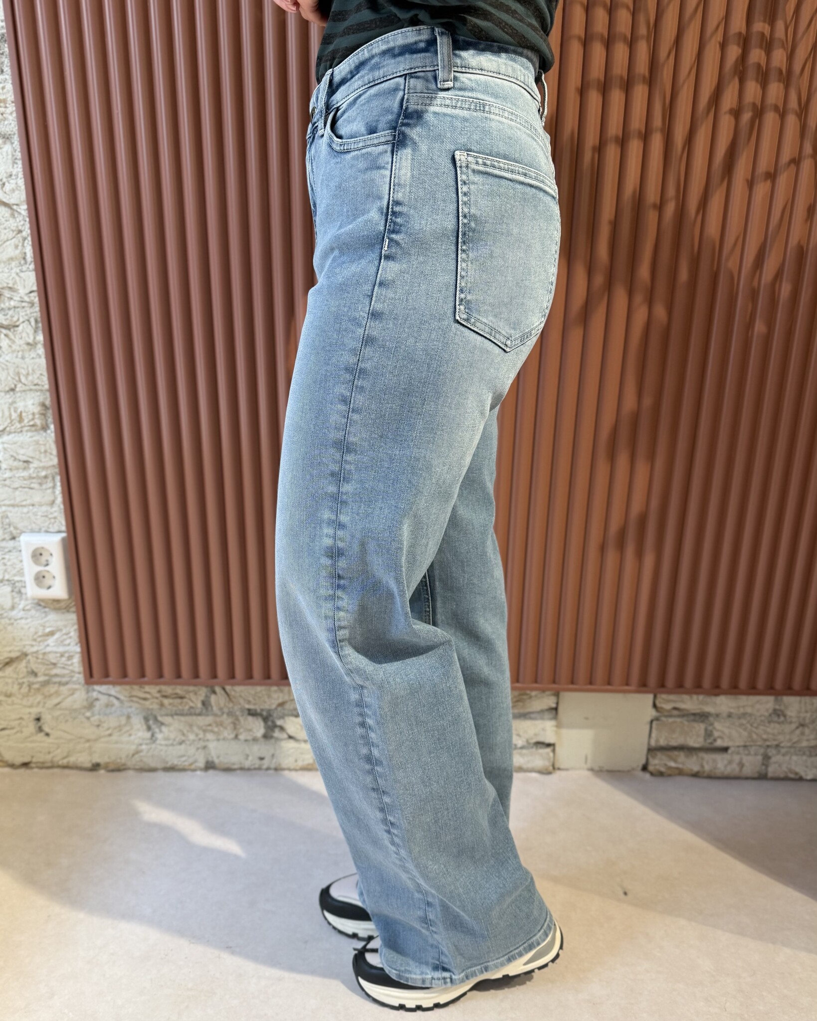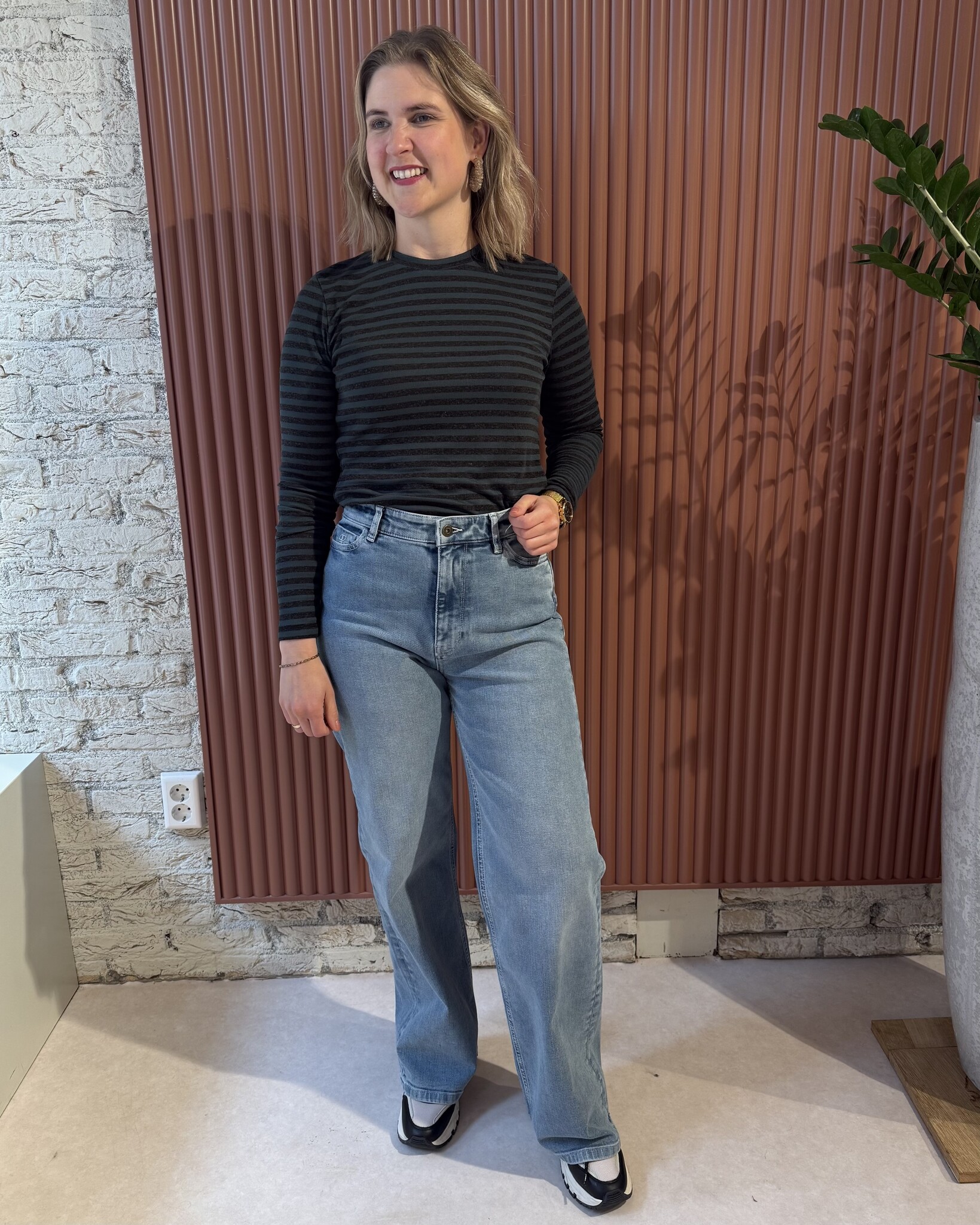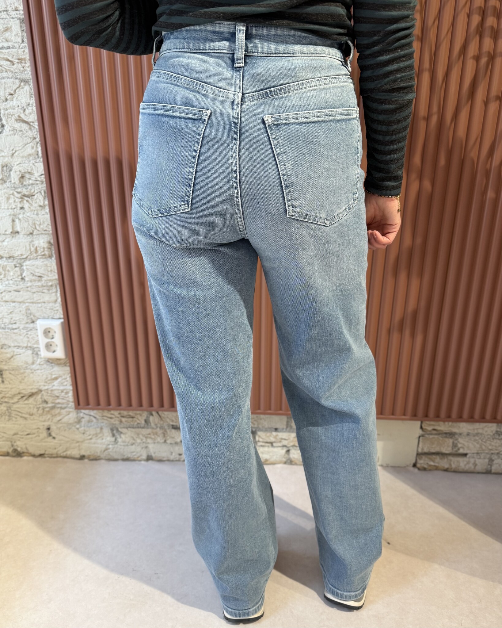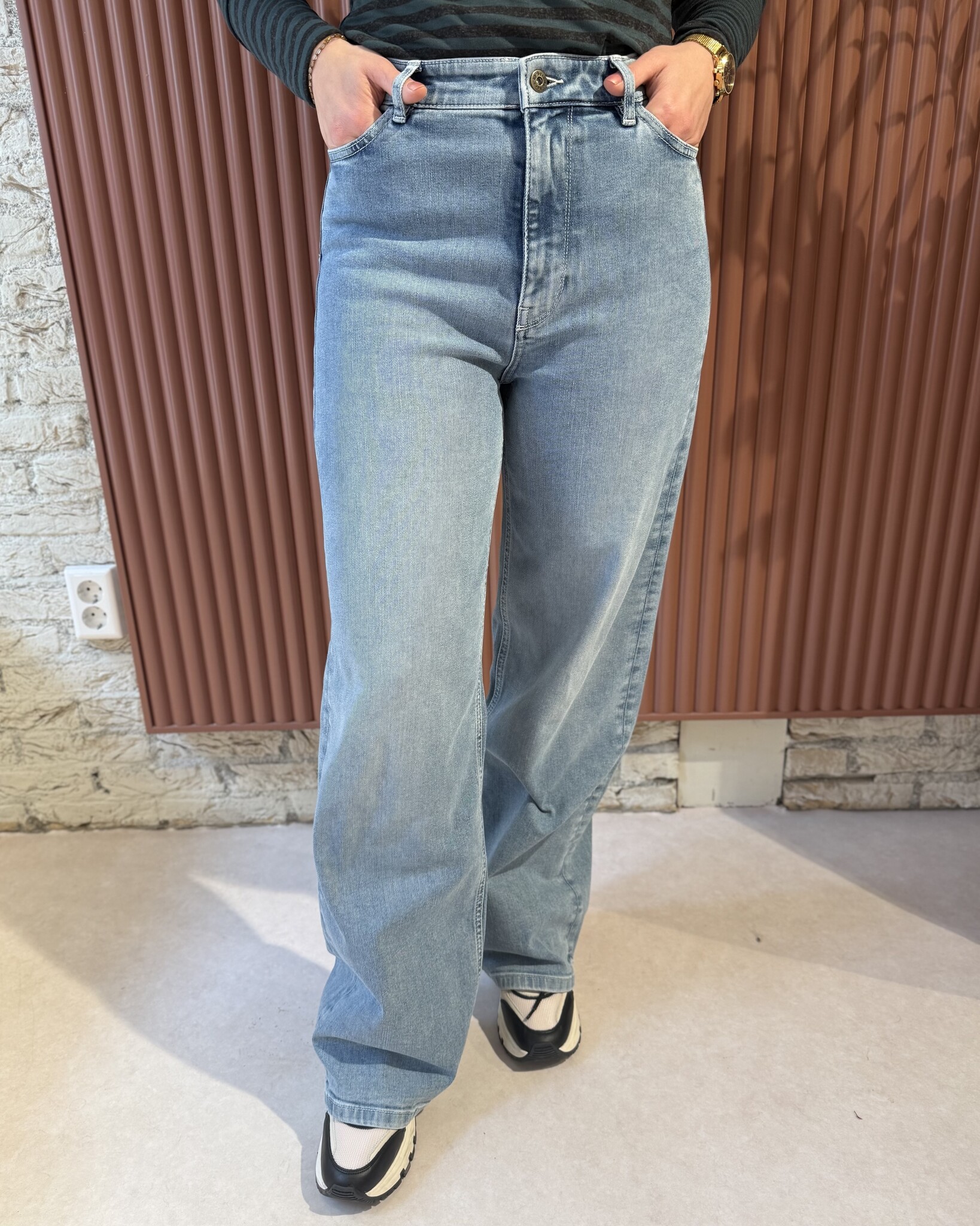De Lina Pants | NRX Denim van By‑Bar is een comfortabele én modieuze jeans die niet mag ontbreken. Deze high waist broek heeft een rechte, losse pijp en een duurzame denim finish. Gemaakt van 99% katoen en 1% elastaan waardoor hij zacht voelt, iets meerekt en ideaal is voor dagelijks gebruik.