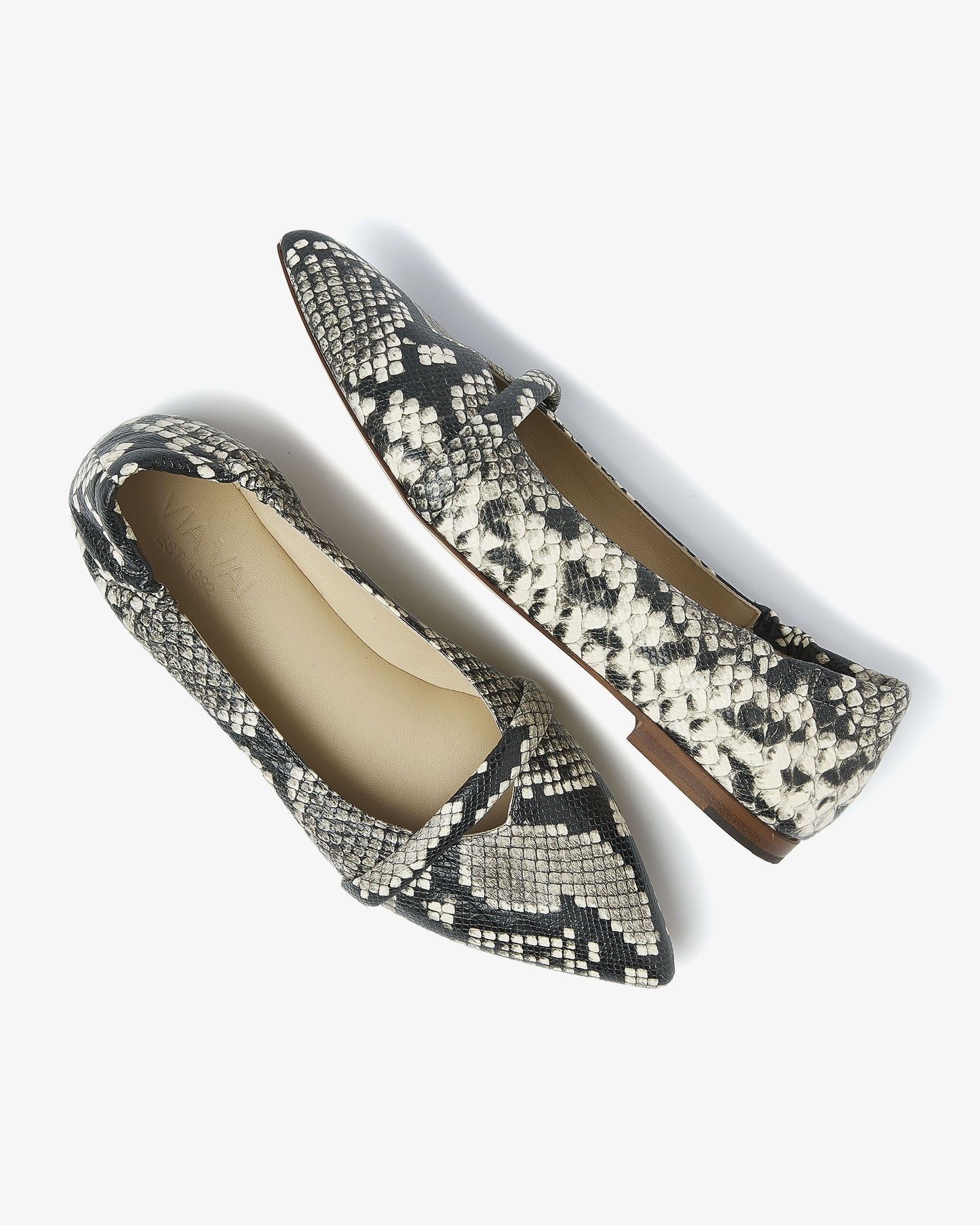 De Lola Rose loafers van VIAVAI in de kleur Cobra Roccia zijn geïnspireerd op tijdloze classic loafers en dit keer met moderne twists, zoals spitse neuzen, bandjes en edgy details. Elegant, classy but trendy. De subtiele belijningen en hoogwaardige materialen zorgen voor een luxe uitstraling. Een veelzijdige instapper waarmee je moeiteloos stijl en comfort combineert, perfect voor elke dag!
