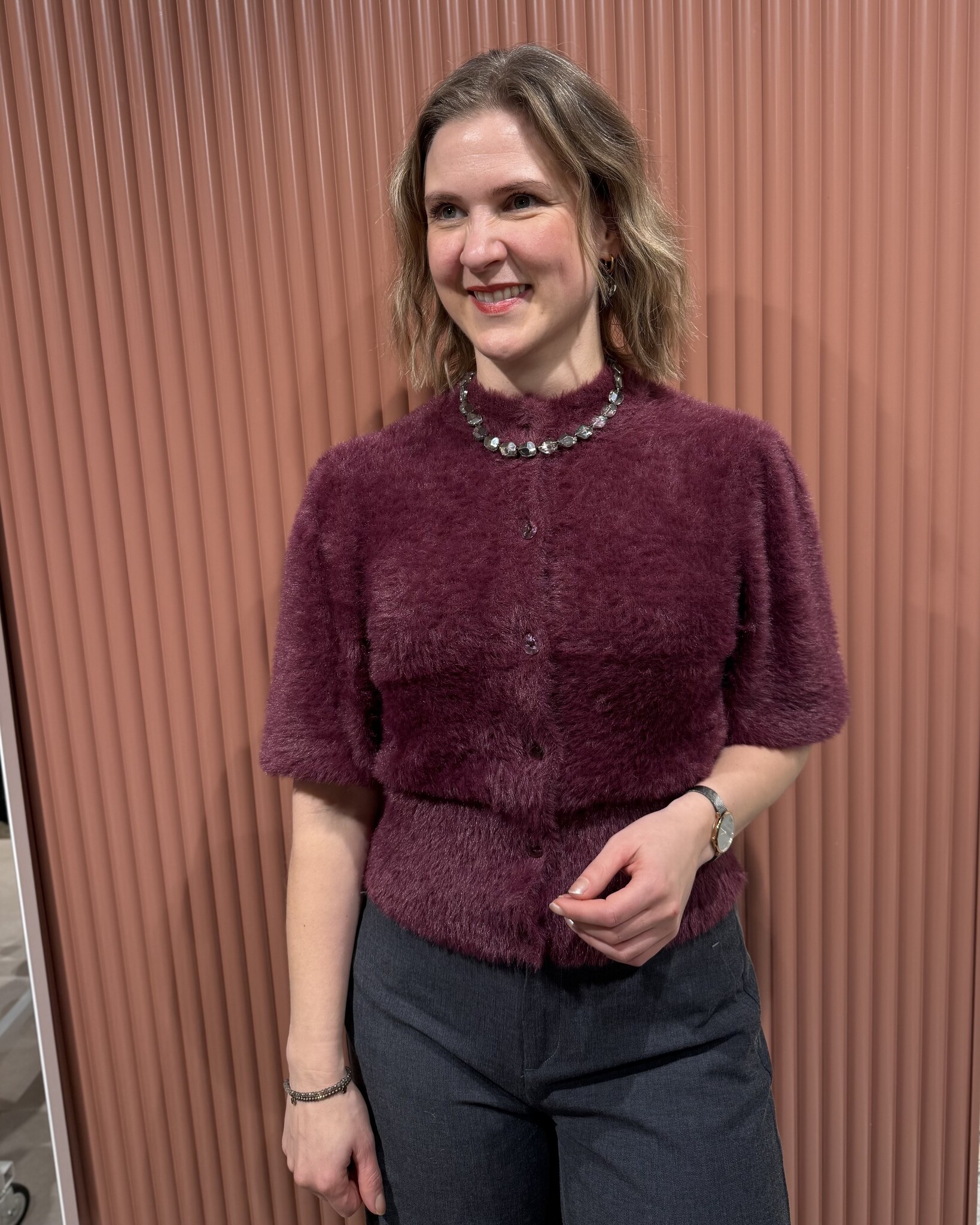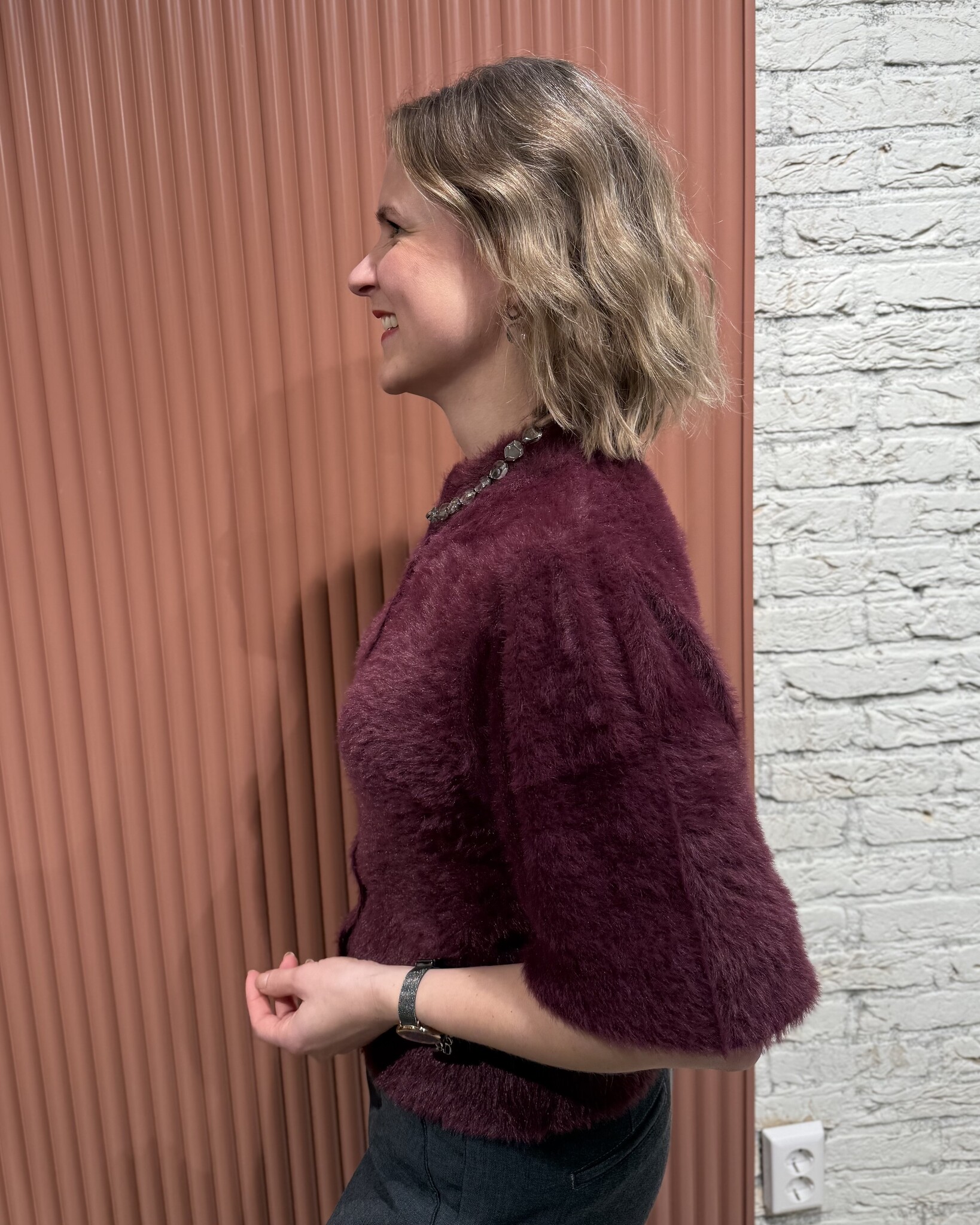 De Meganne Cardigan in Mulberry Red van Dante6 is een luxe, gebreide cardigan met een moderne uitstraling. Gemaakt van zachte materialen voor ultiem comfort en een verfijnde afwerking.