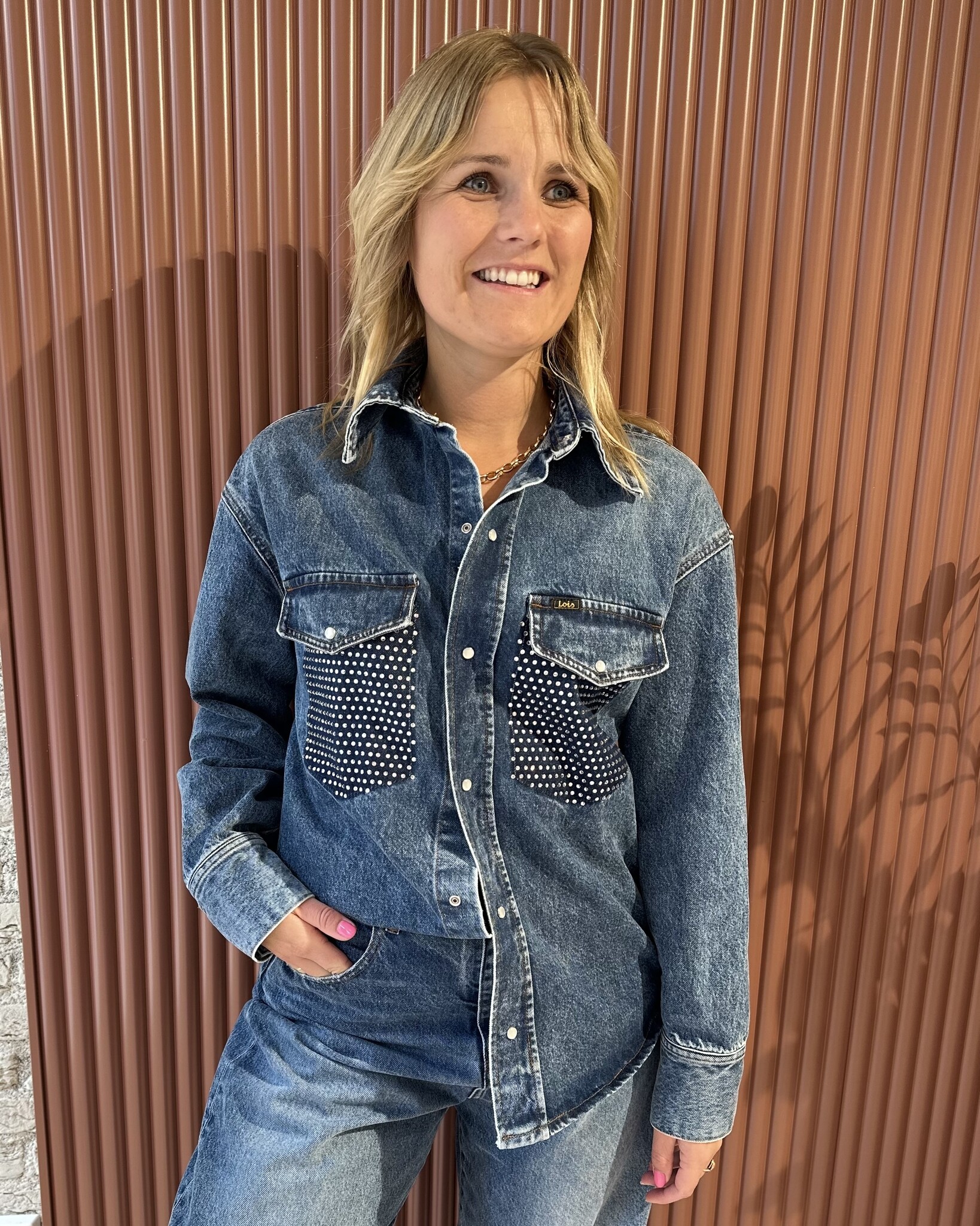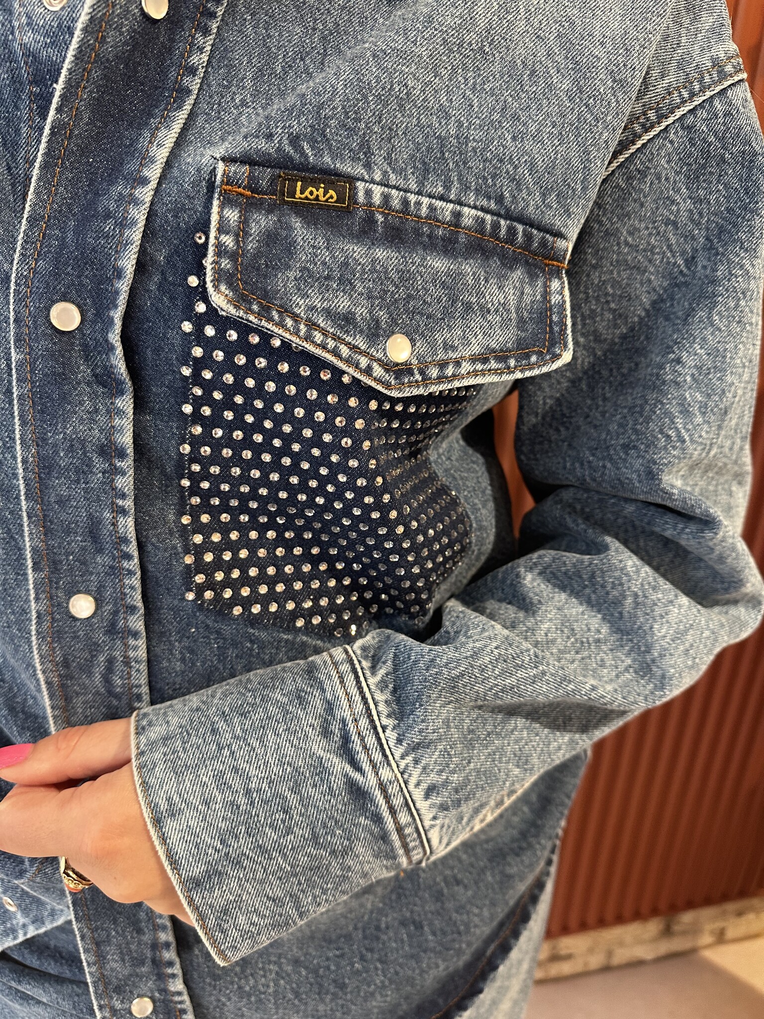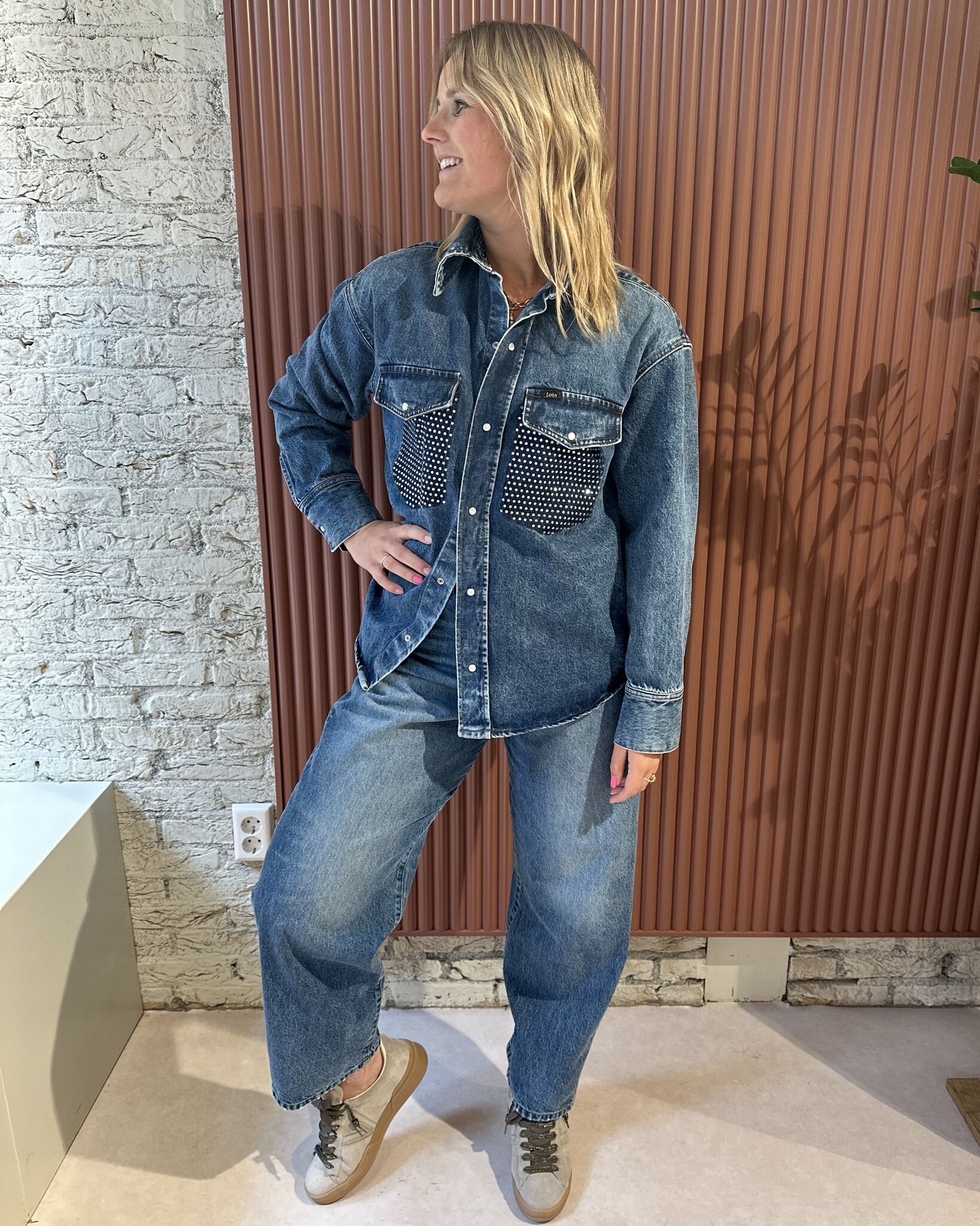 De Lois Mia Shirt | Diamond Occlusion | Occlusion Stones is een opvallende denim blouse met een westers tintje en plein sierlijke details. Deze oversized blouse combineert stoer en glans voor een krachtige look.