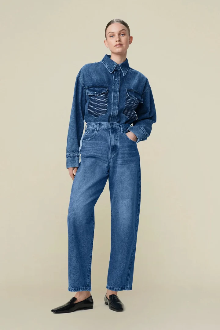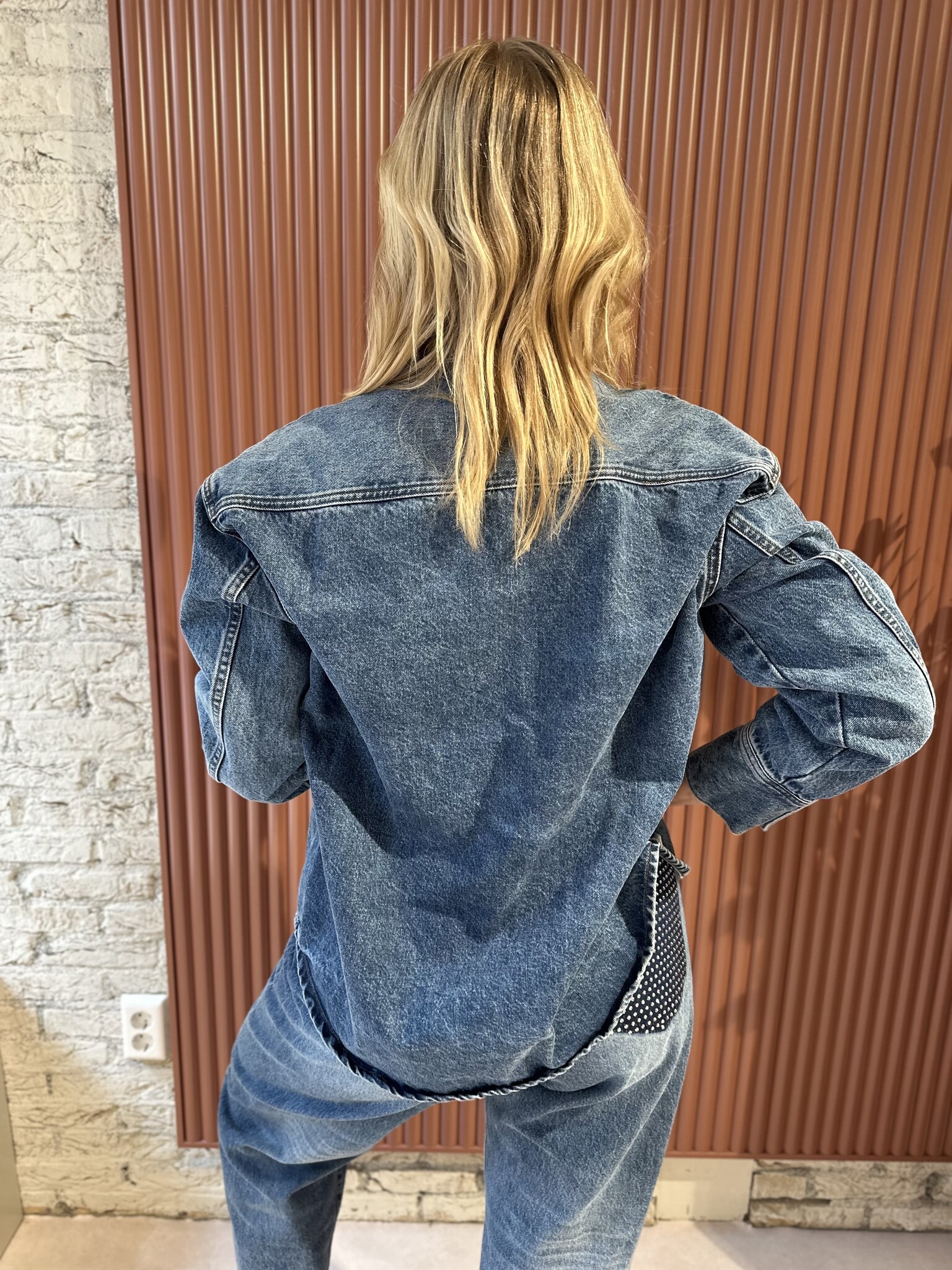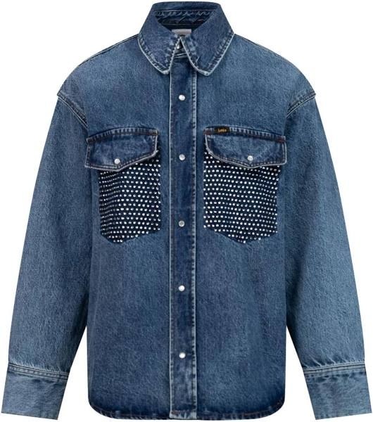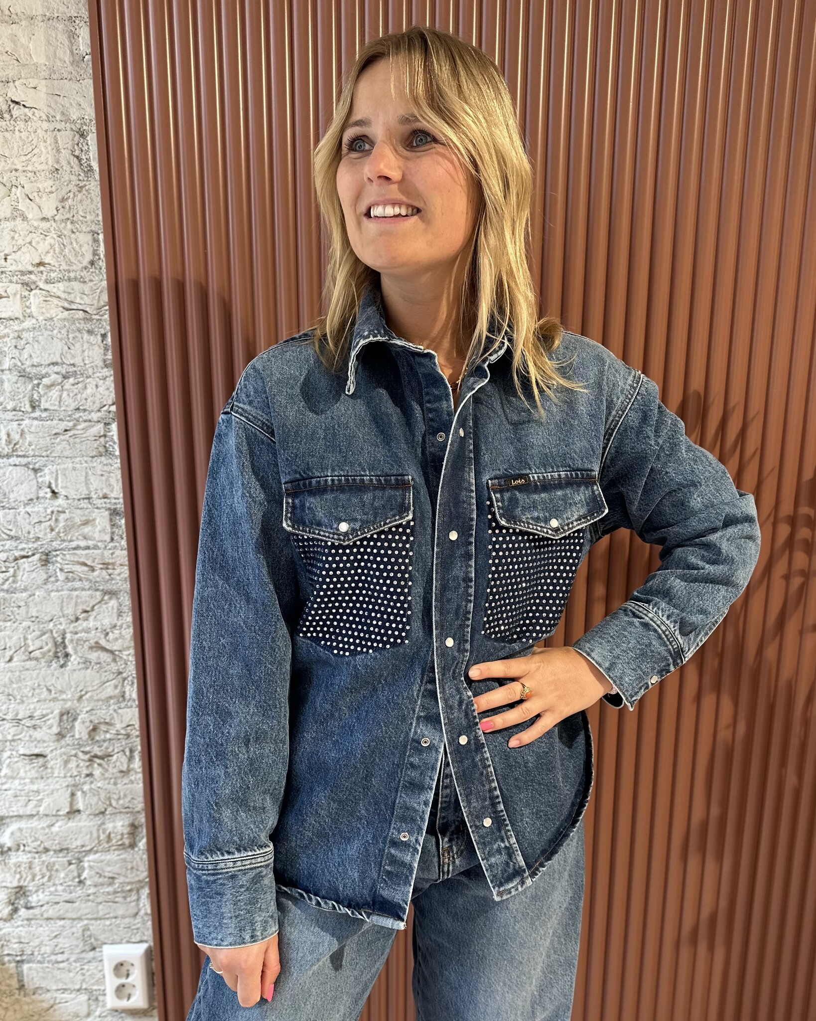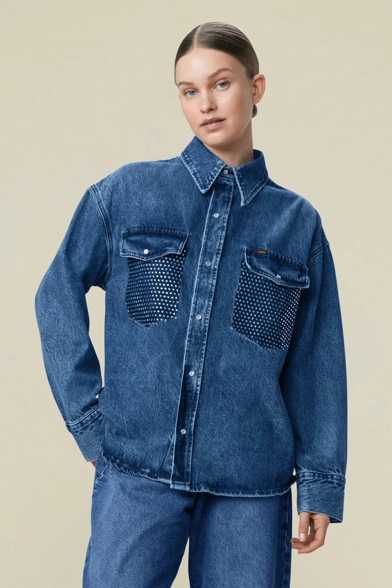 De Lois Mia Shirt | Diamond Occlusion | Occlusion Stones is een opvallende denim blouse met een westers tintje en plein sierlijke details. Deze oversized blouse combineert stoer en glans voor een krachtige look.