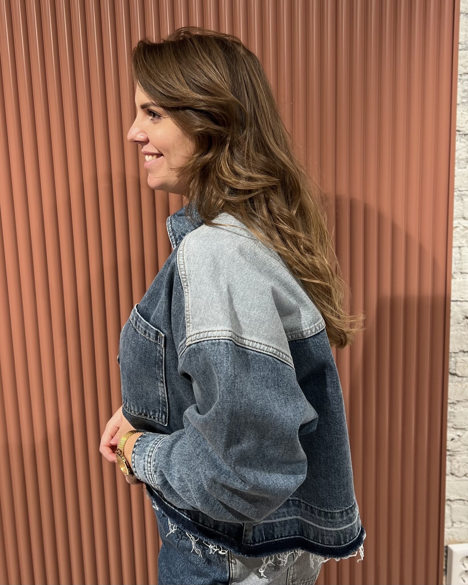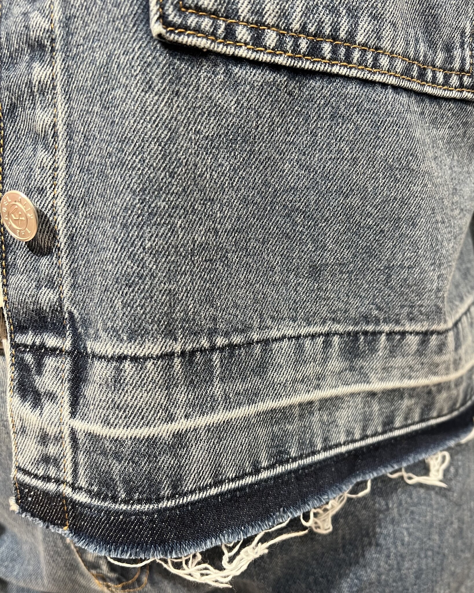 Details: Twee denim kleuren en raw cut onderzoom voor een trendy uitstraling