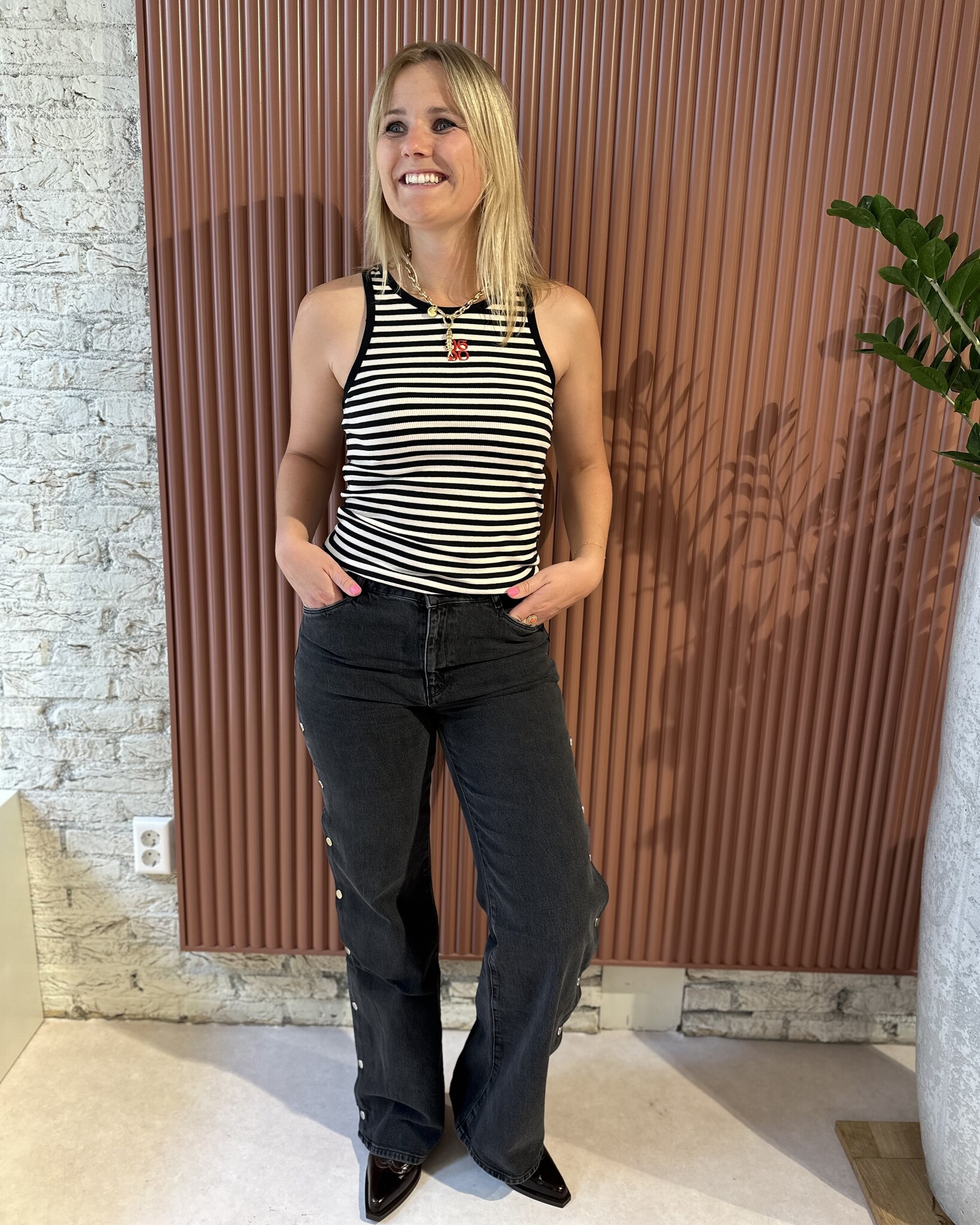 • Gestreepte tanktop met monogram