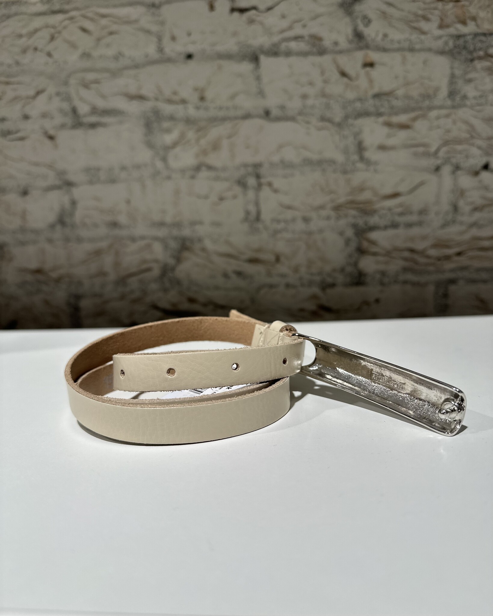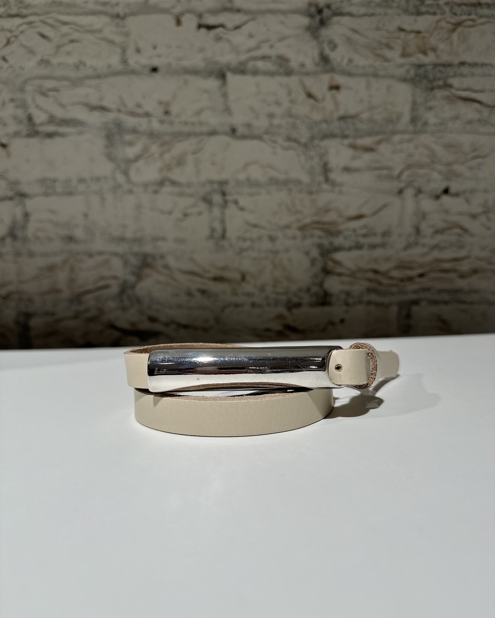 De Nappa Belt Women in Ecru van Elvy Fashion is een stijlvolle damesriem gemaakt van hoogwaardig leer. De zachte ecrukleur en het verfijnde, smalle ontwerp van 2 cm breed geven deze riem een tijdloze en elegante uitstraling. Perfect om subtiel een lichte, luxe touch toe te voegen aan elke outfit.