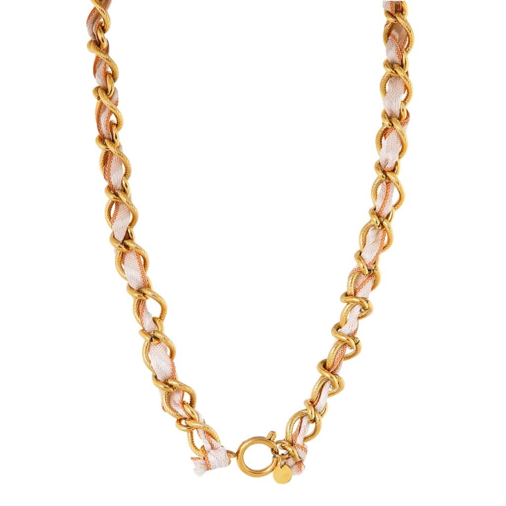 Design: Gouden ketting afgewerkt met zachte beige knoopdetails in de zomerstijl-lijn