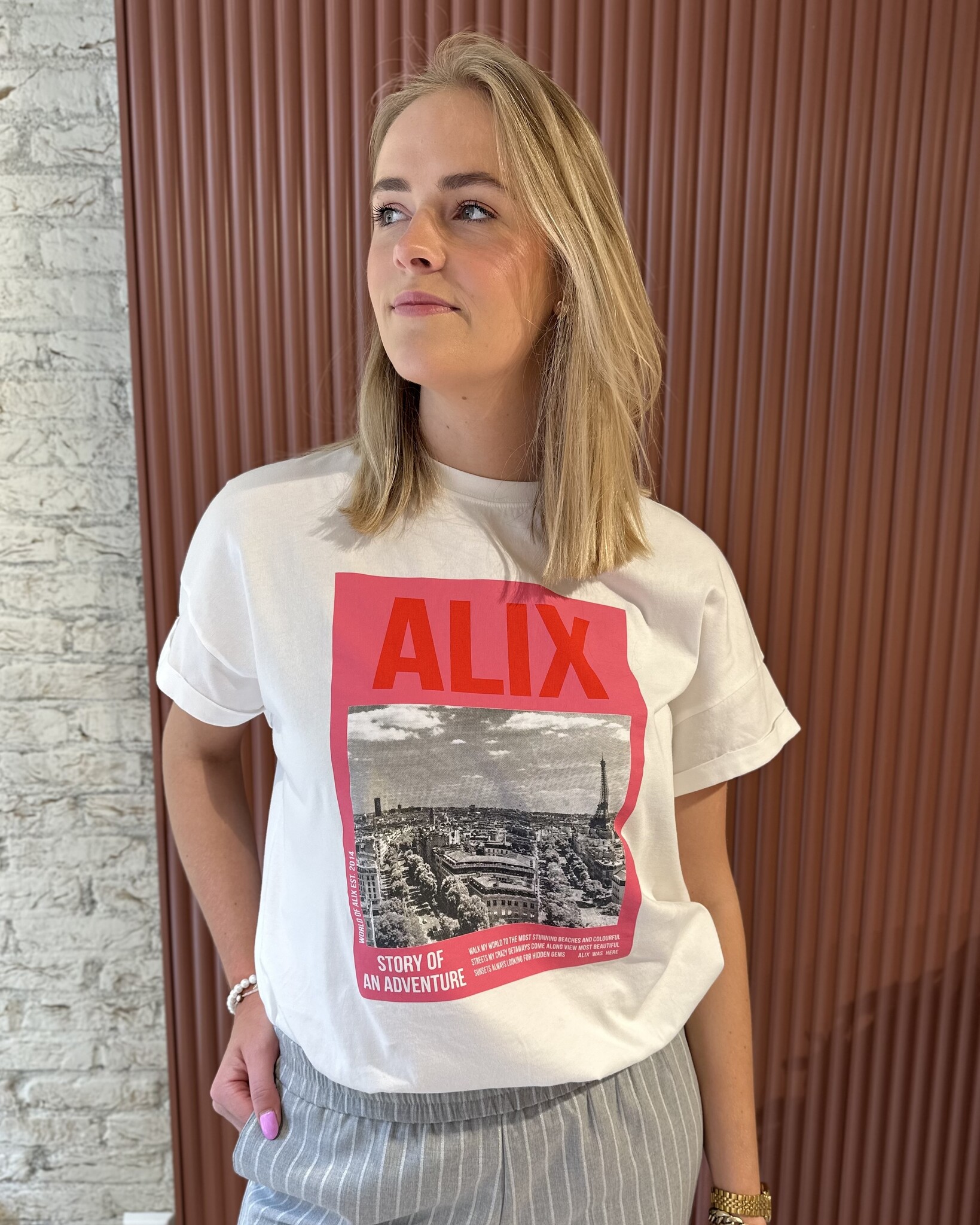 Het Polaroid T-Shirt in Soft White van Alix the Label is een statement piece in je garderobe. Gemaakt van 100% katoen, biedt dit oversized T-shirt zowel comfort als stijl. De opvallende fotoprint op de voorkant voegt een artistiek element toe aan je outfit. Het shirt heeft een ronde halslijn en korte mouwen, wat het perfect maakt voor een casual en trendy look.