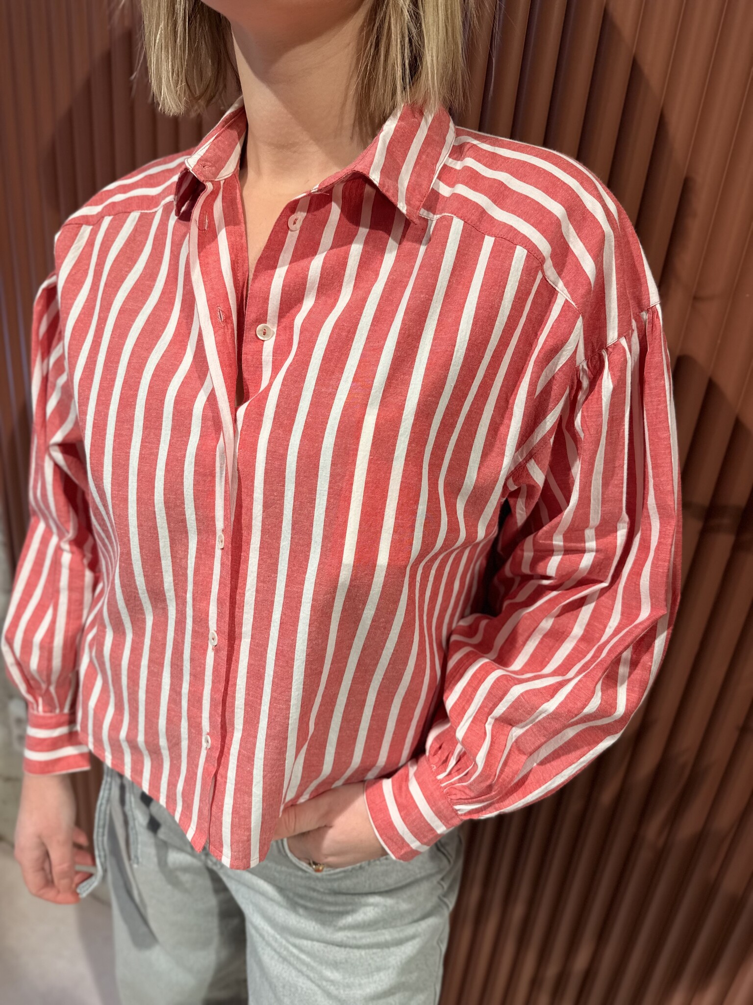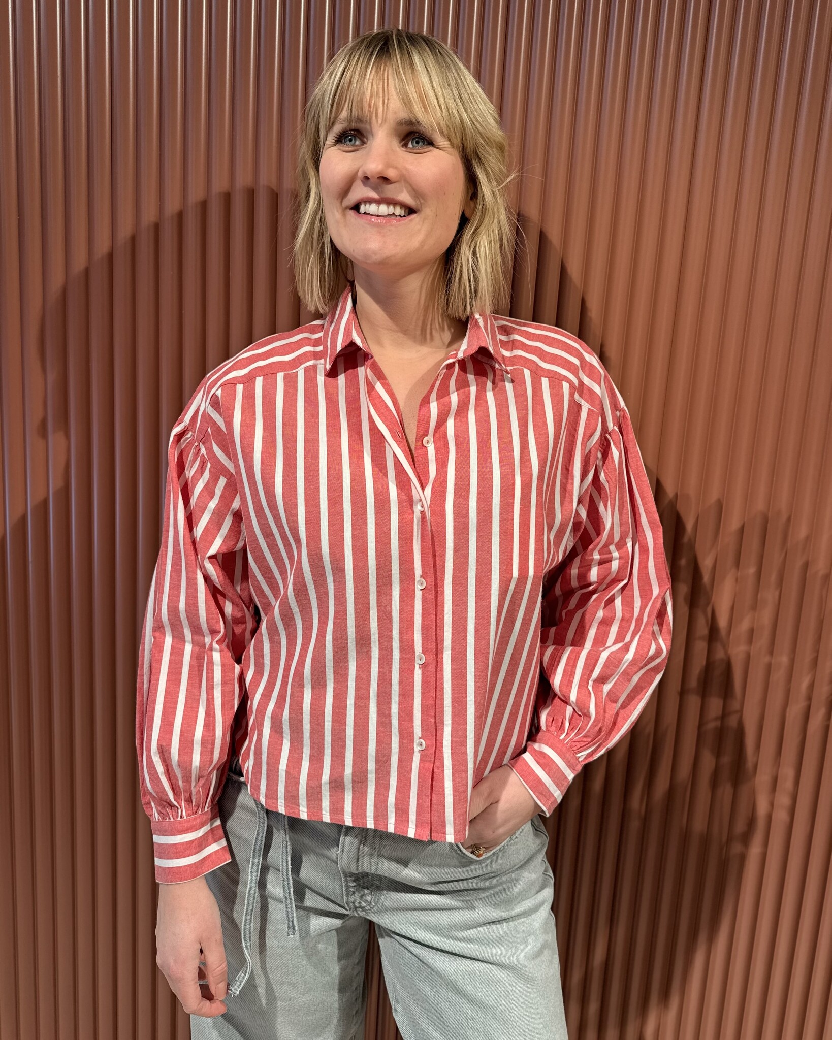 By-Bar Sarah Short Stripe Blouse |Red stripe