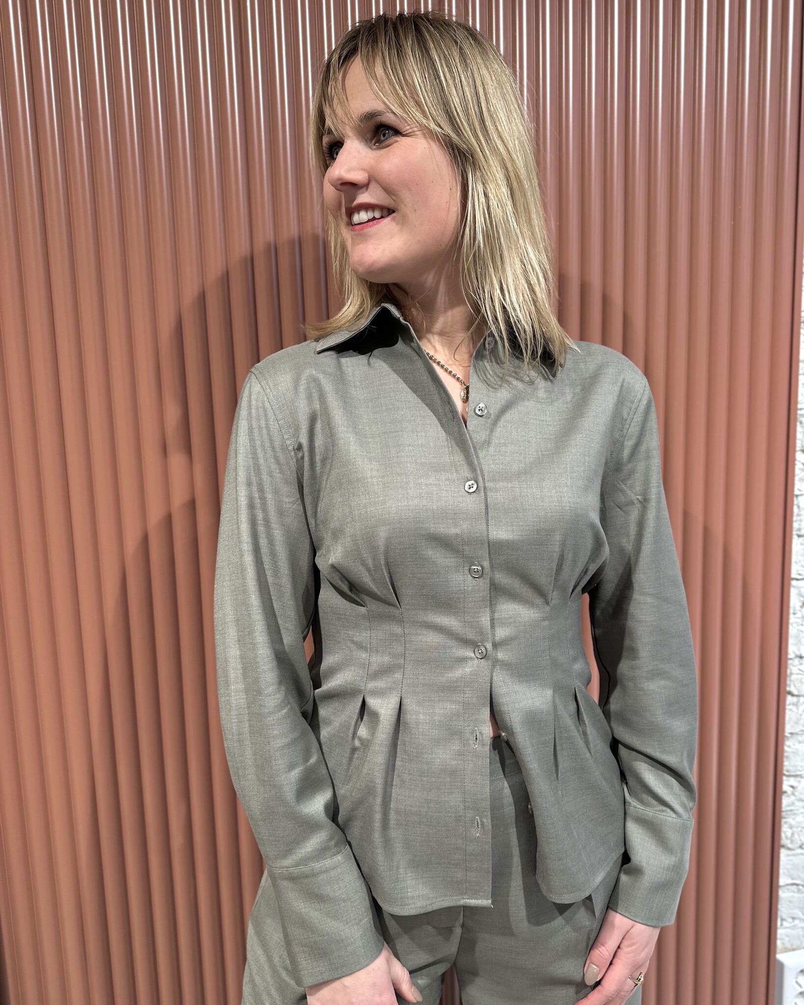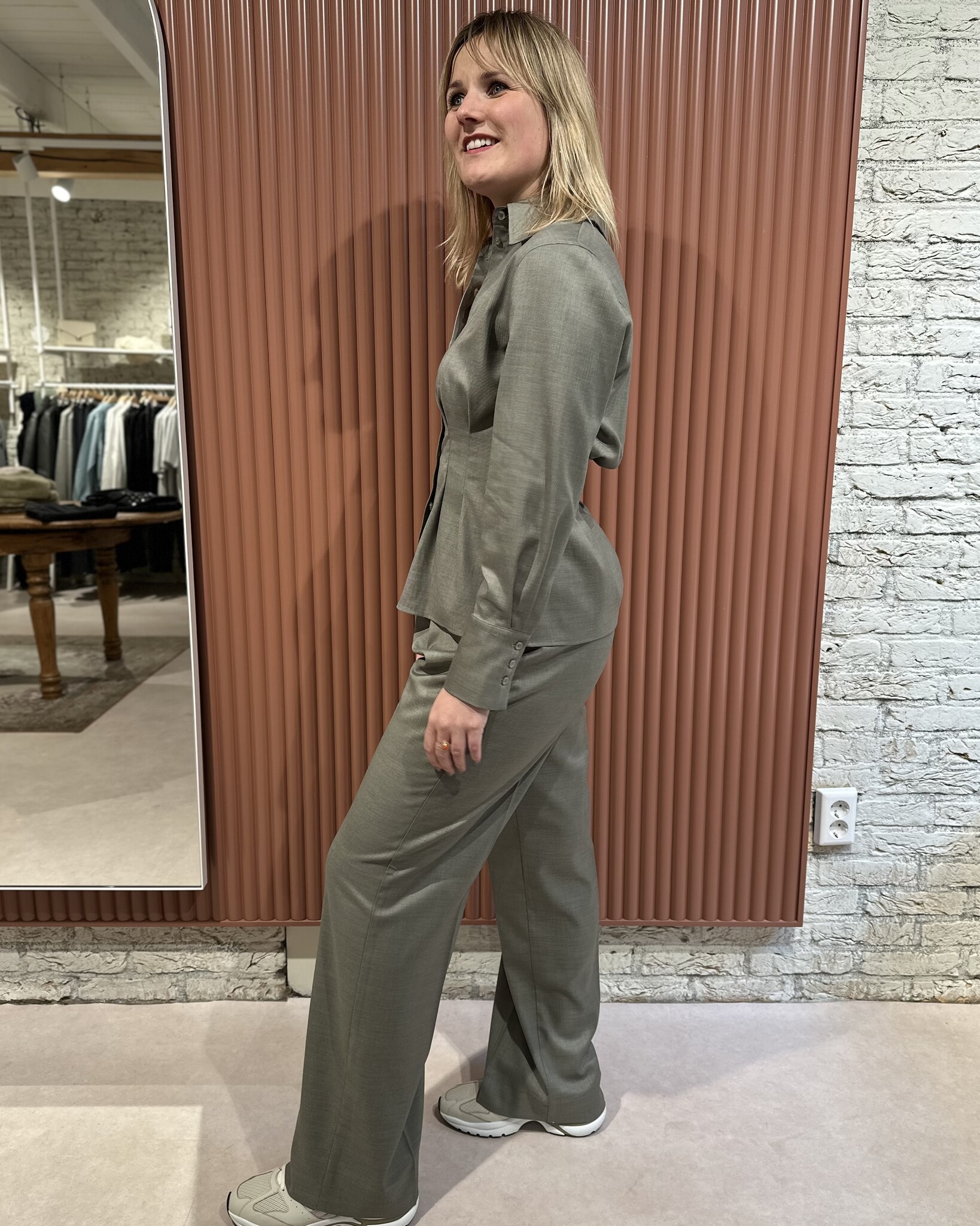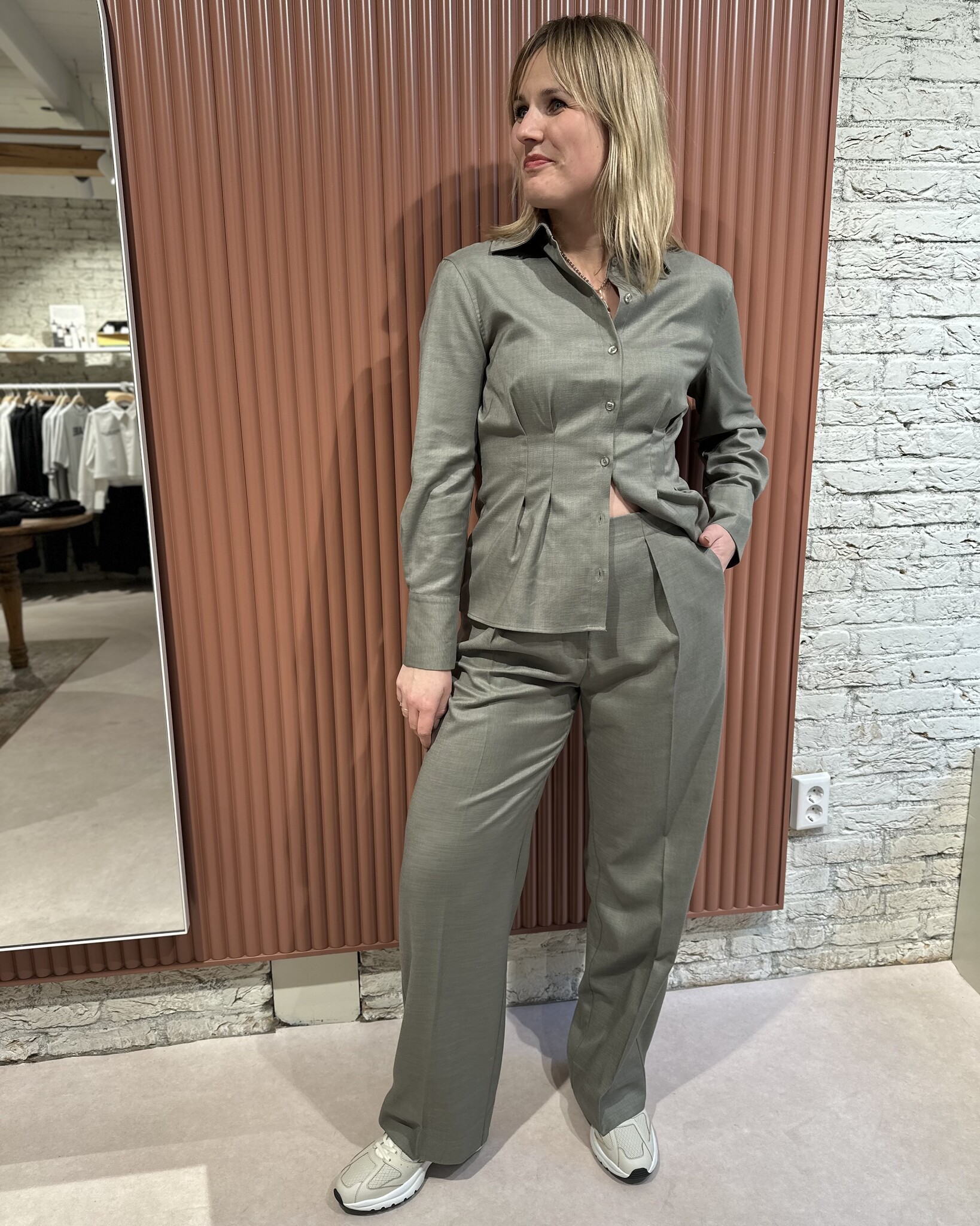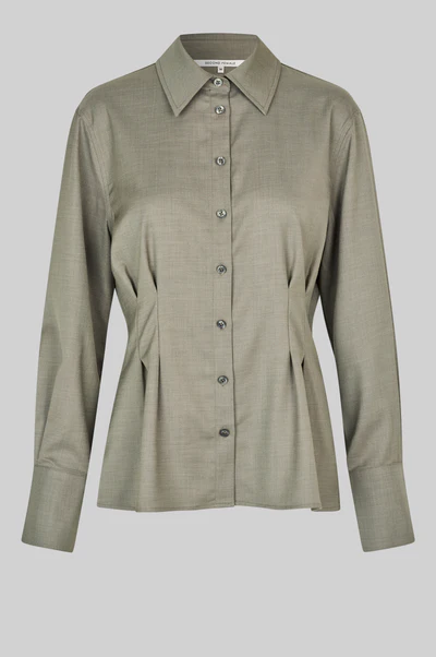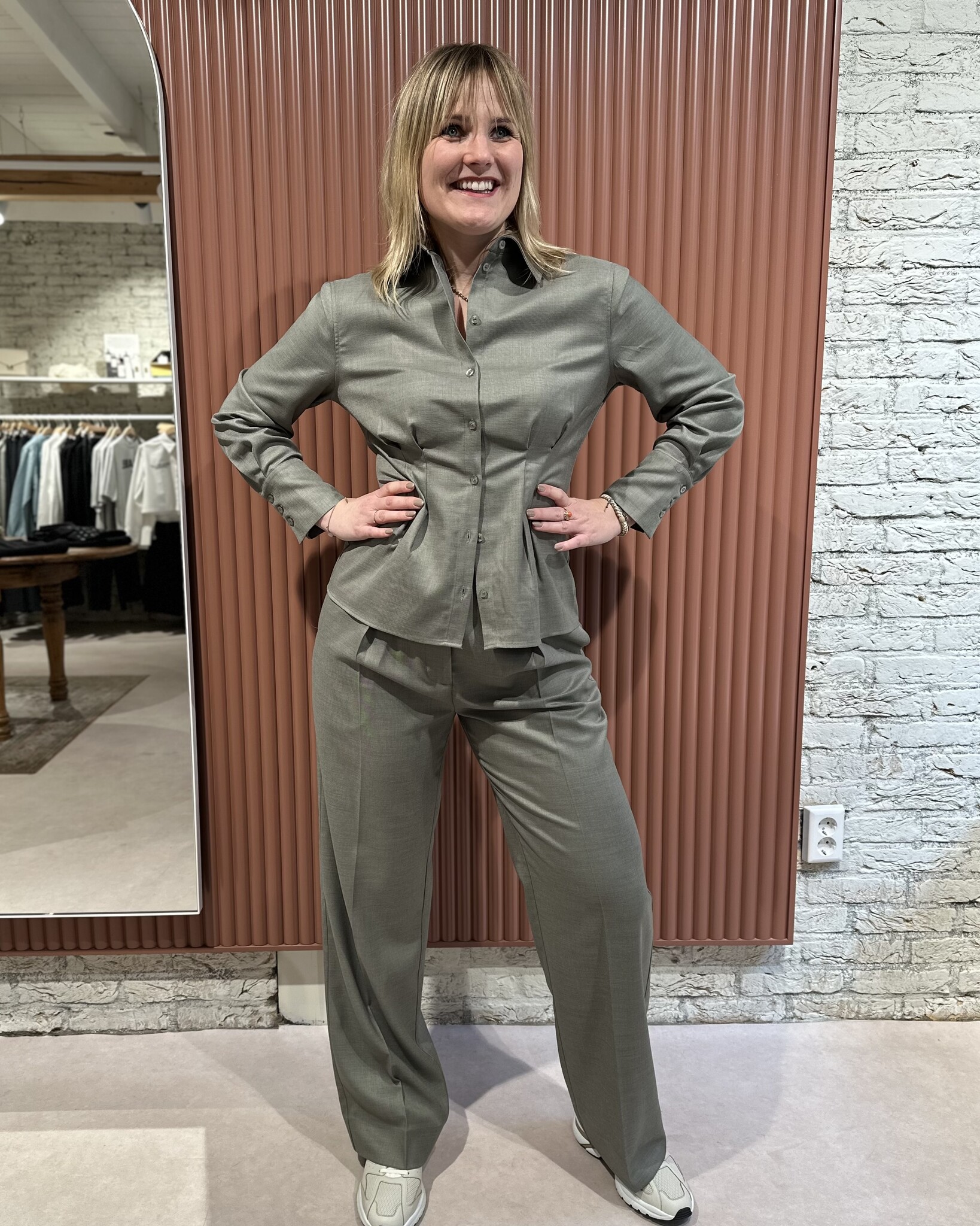 De Sharo Shirt - Agave Green van Second Female is een getailleerd overhemd. De blouse is gemaakt van een lichte en gladde stof en heeft een normale kraag en knoopsluiting. Verder beschikt het shirt over lange mouwen met manchetten met knopen, getailleerde naden aan de voor- en achterkant en een normale pasvorm met gedefinieerde taille.