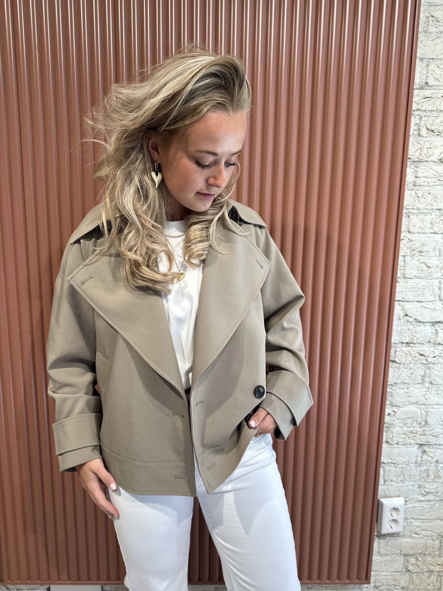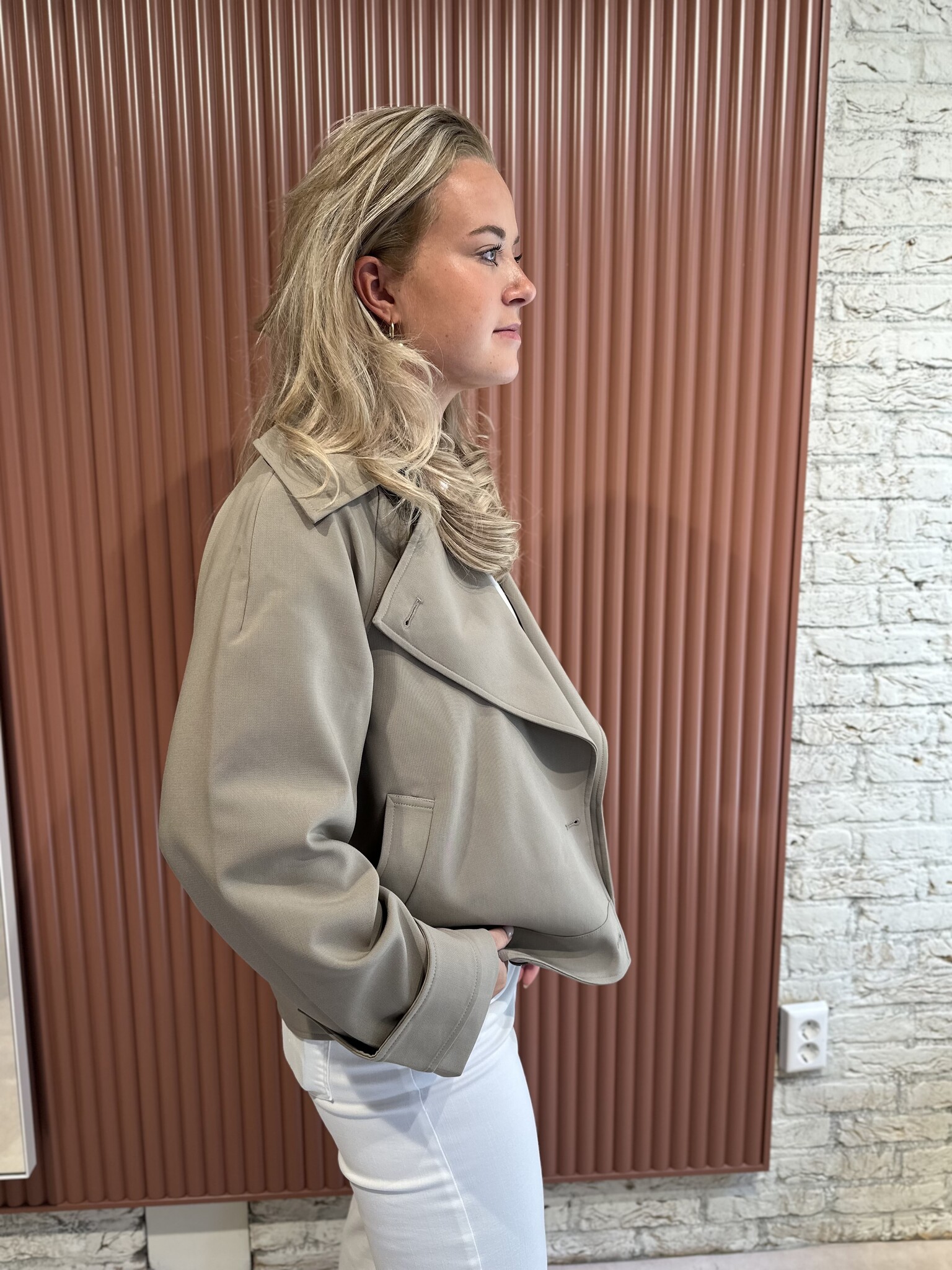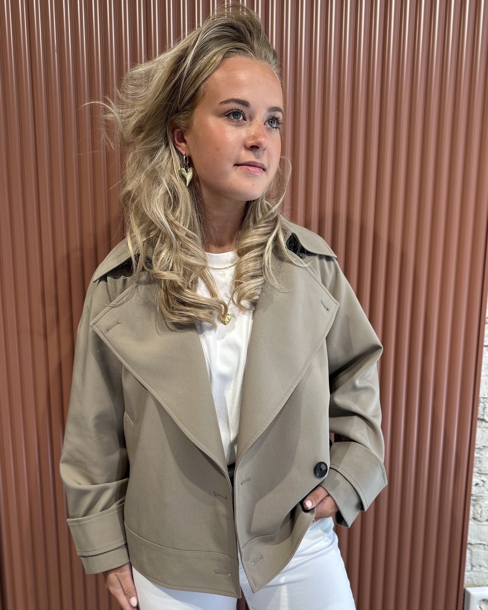 De Silvie Trench Jacket in Fallen Rock van Second Female is een elegante en veelzijdige trenchcoat die je look zowel stijlvol als praktisch maakt. Gemaakt van een comfortabele mix van polyester, viscose en elastaan, biedt deze jas een perfecte balans tussen comfort en mode. De jas heeft de volgende kenmerken: