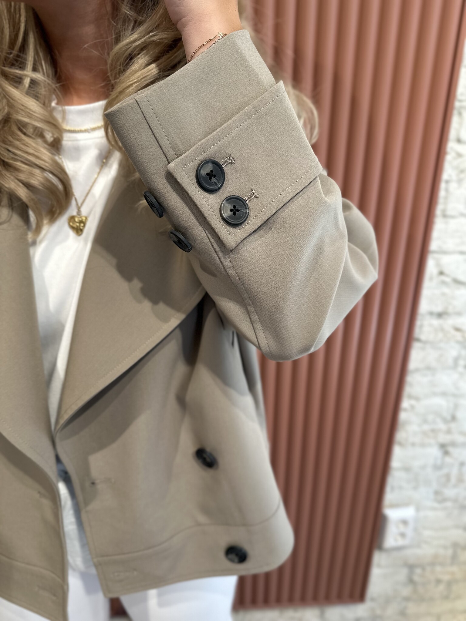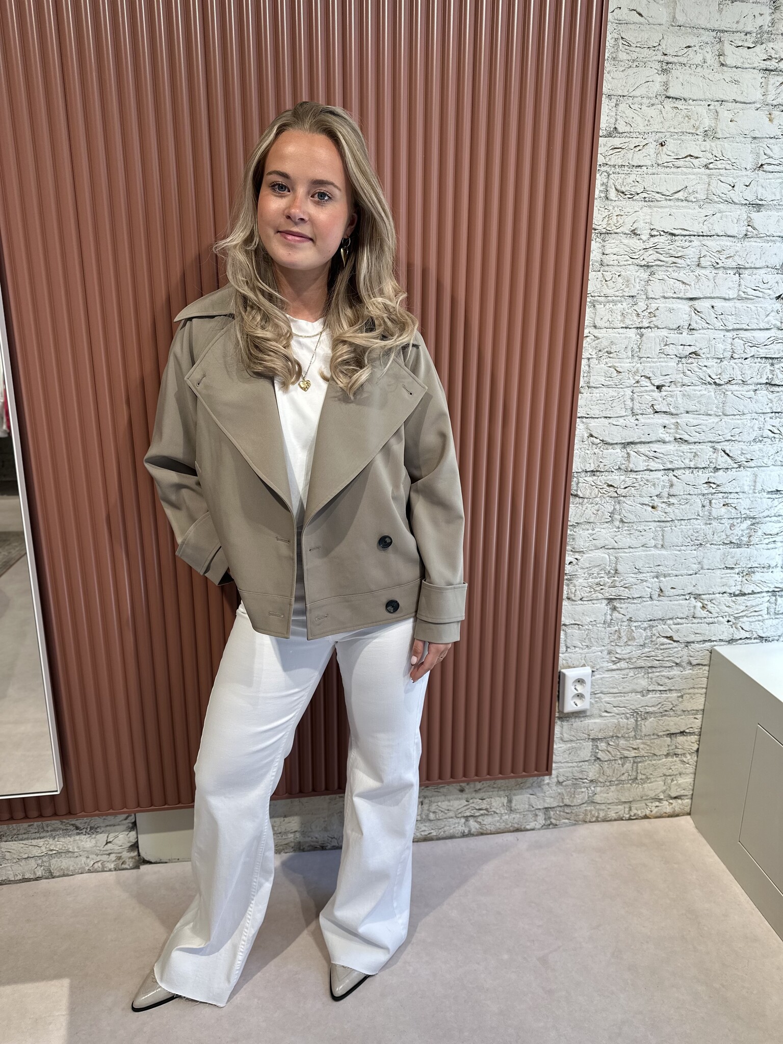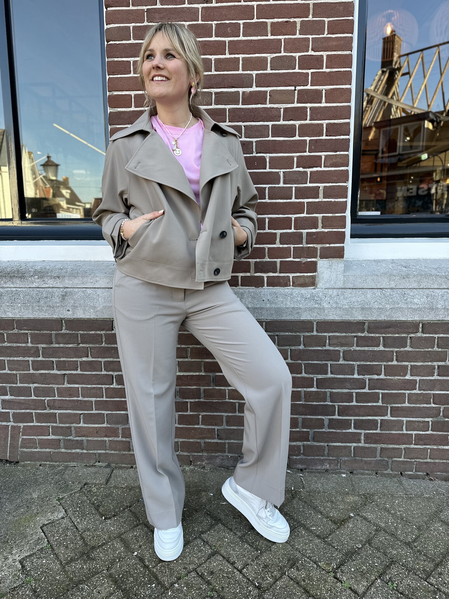 De Silvie Trench Jacket in Fallen Rock van Second Female is een elegante en veelzijdige trenchcoat die je look zowel stijlvol als praktisch maakt. Gemaakt van een comfortabele mix van polyester, viscose en elastaan, biedt deze jas een perfecte balans tussen comfort en mode. De jas heeft de volgende kenmerken: