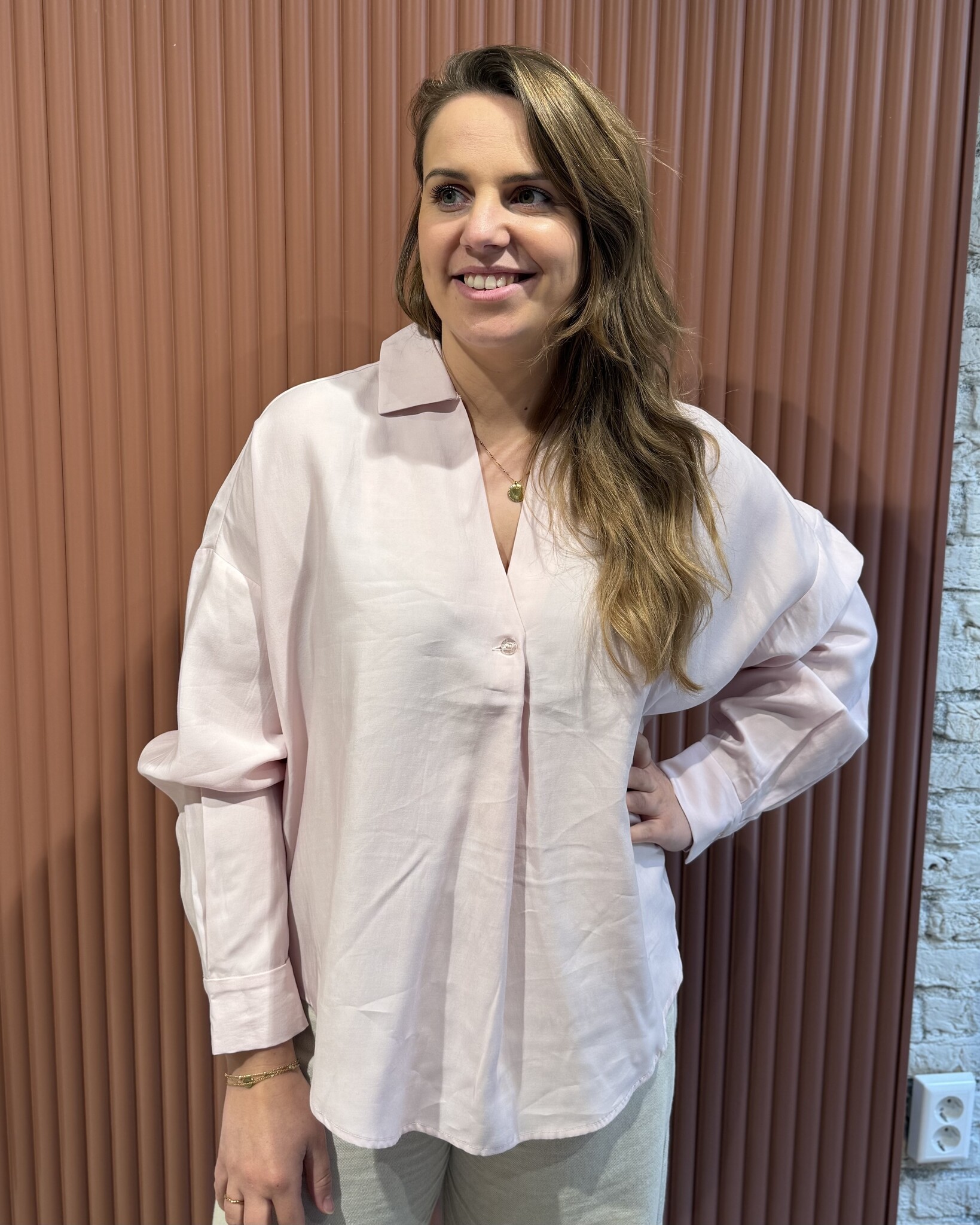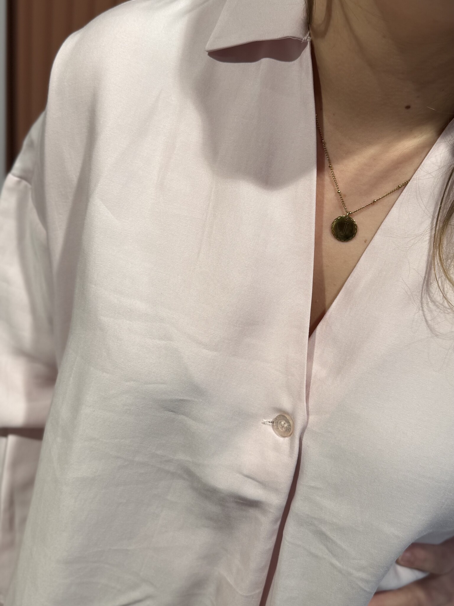 • Sluiting: V-hals met enkele knoop