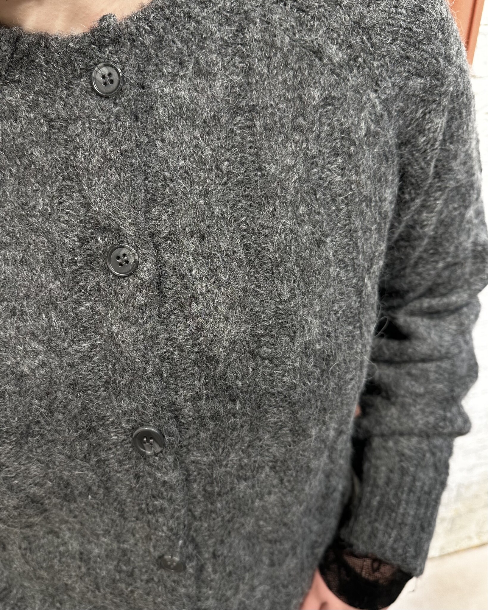 De Tulip Cable Knit Cardigan in Grey Melange van Rosemunde is een elegante en comfortabele keuze voor elke gelegenheid. Het prachtige kabelpatroon geeft de cardigan een klassieke uitstraling, terwijl de luxe mix van 46% polyamide, 32% acryl, 18% wol en 4% alpaca zorgt voor een zachte en warme feel. Ideaal voor laagjes in de koudere maanden.